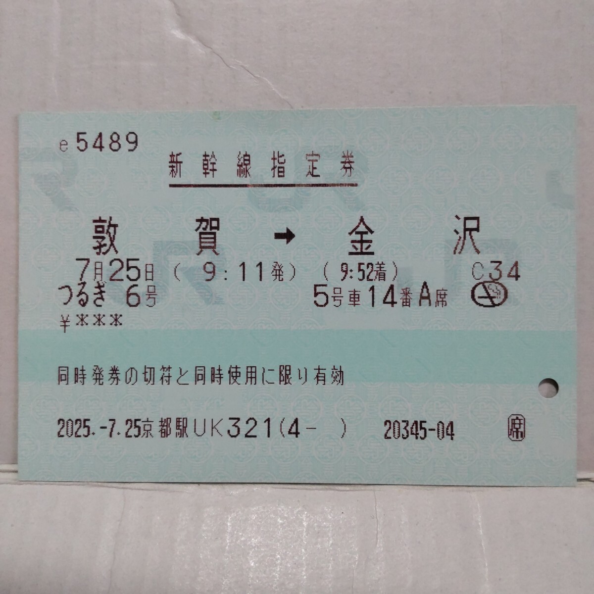 JRマルス券使用済つるぎ号新幹線指定券です。
