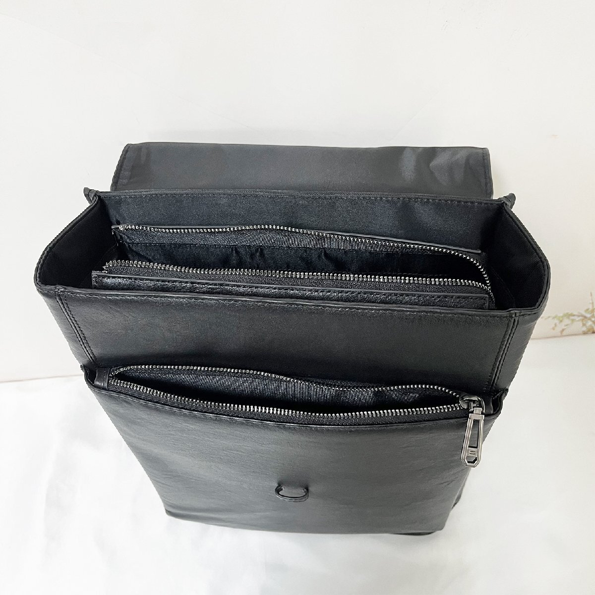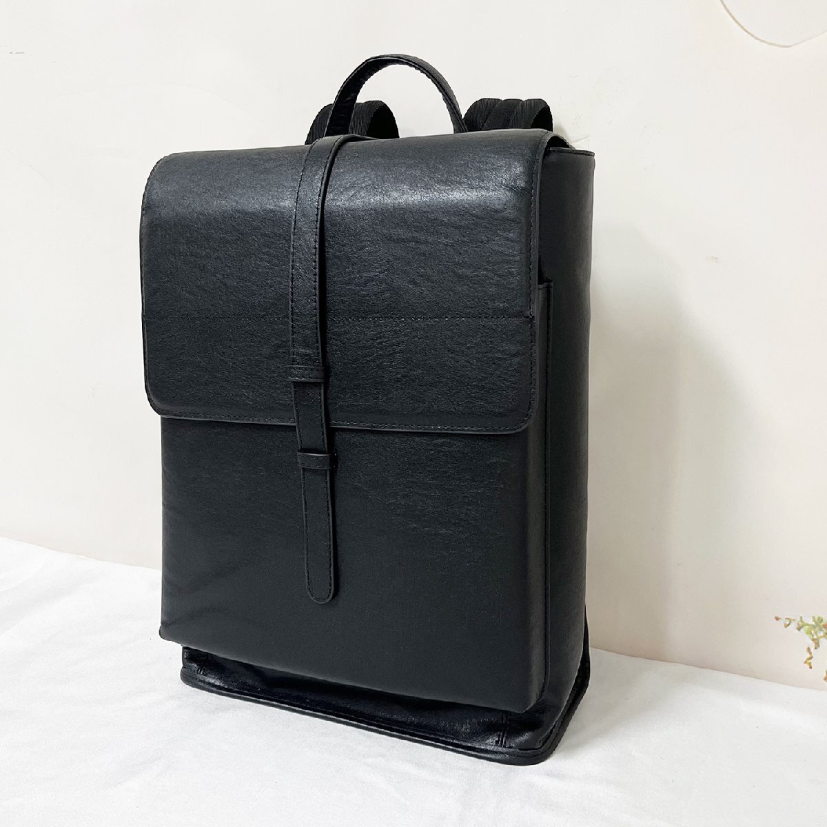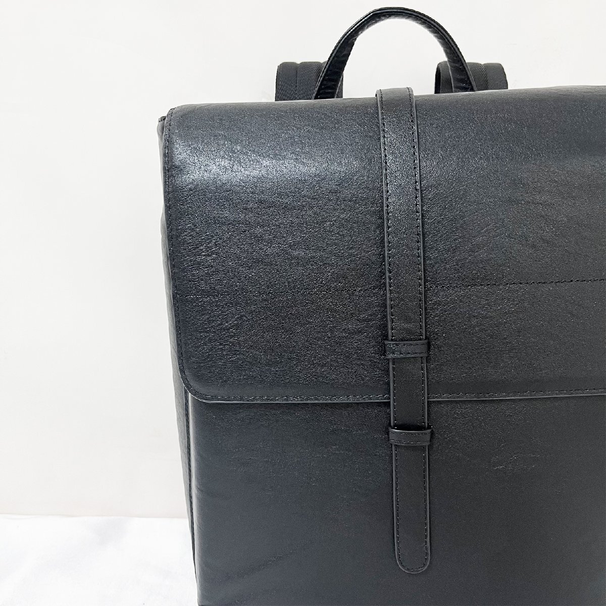薄いながらも革製でレトロな雰囲気のあるバッグパック。