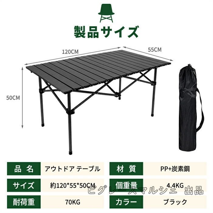 テーブル:展開サイズ:約?120*55*50cm、 折り畳みサイズ:約69*16*21、4.4kg