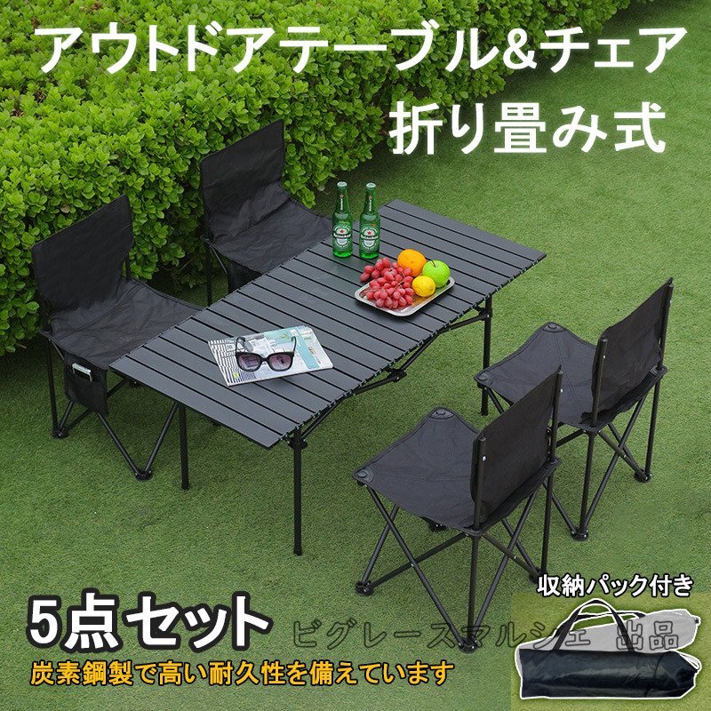 アウトドア テーブル 軽量 折りたたみ 炭素鋼製 ピクニック バーベキュー キャンプ アウトドア 携帯便利 収納バッグ付 5点セット hw1341