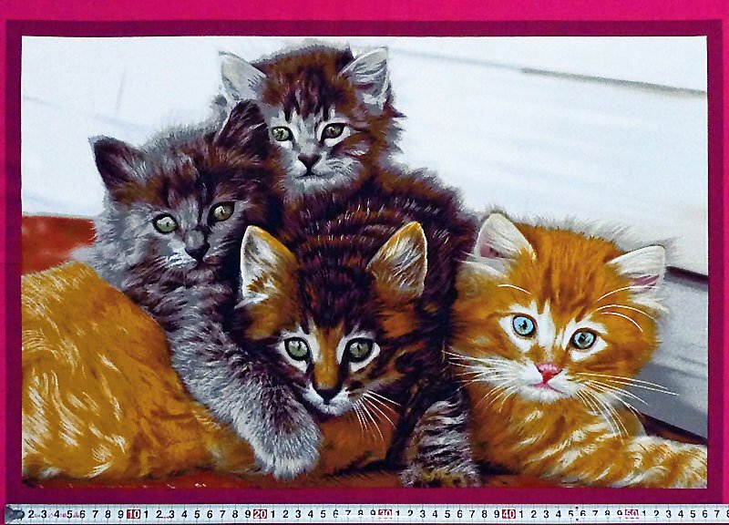 ネコもお花も大きく描かれたこのパネル柄から、クッションやタペストリーを作ると、ネコの魅力に圧倒されますね。