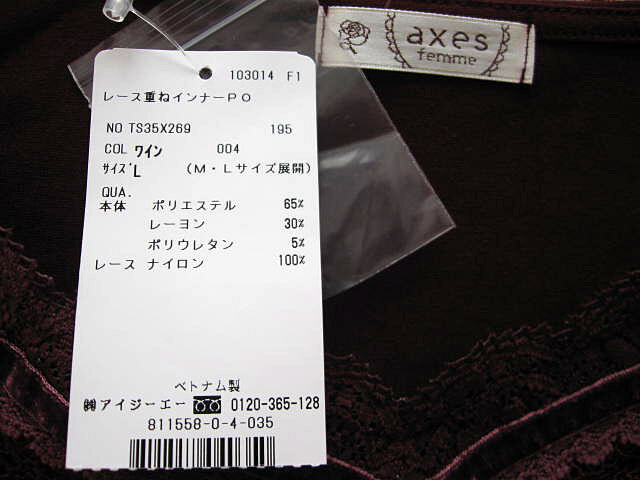 axes femme ワインレッド 重ねインナープルオーバーカットソー Lサイズ