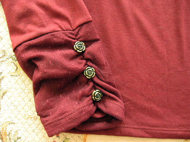 袖にバラ花型のアンティークな金ボタンが3つずつ付いています。