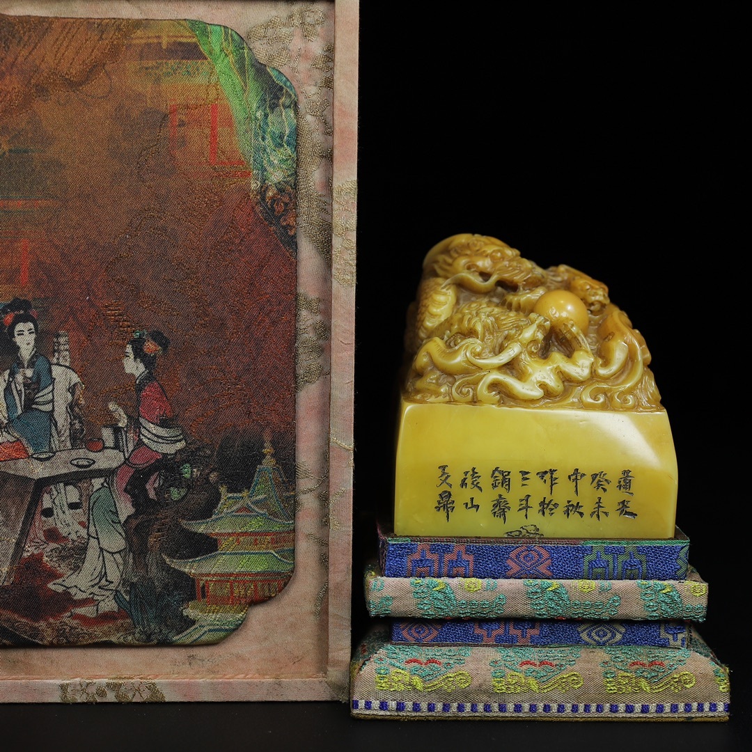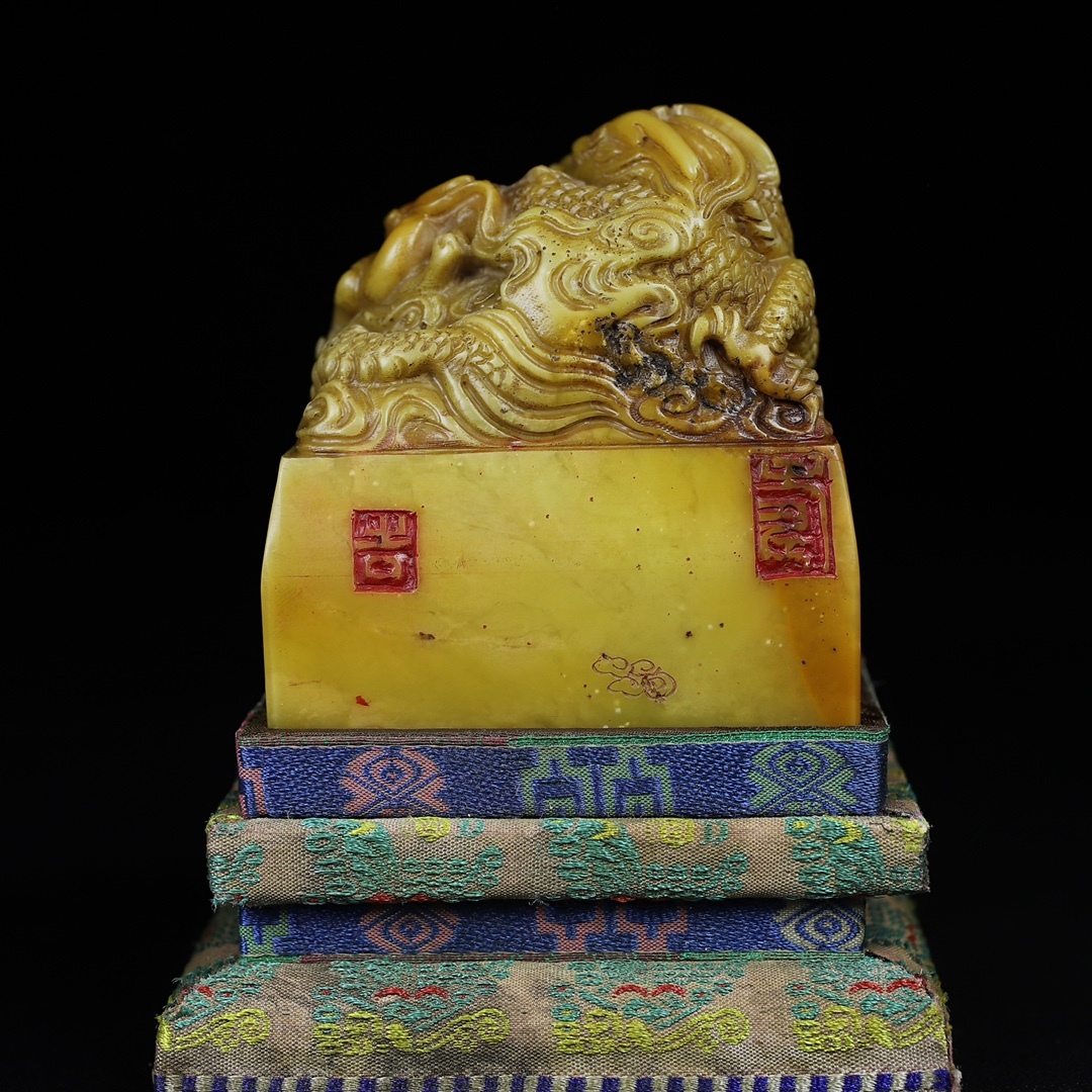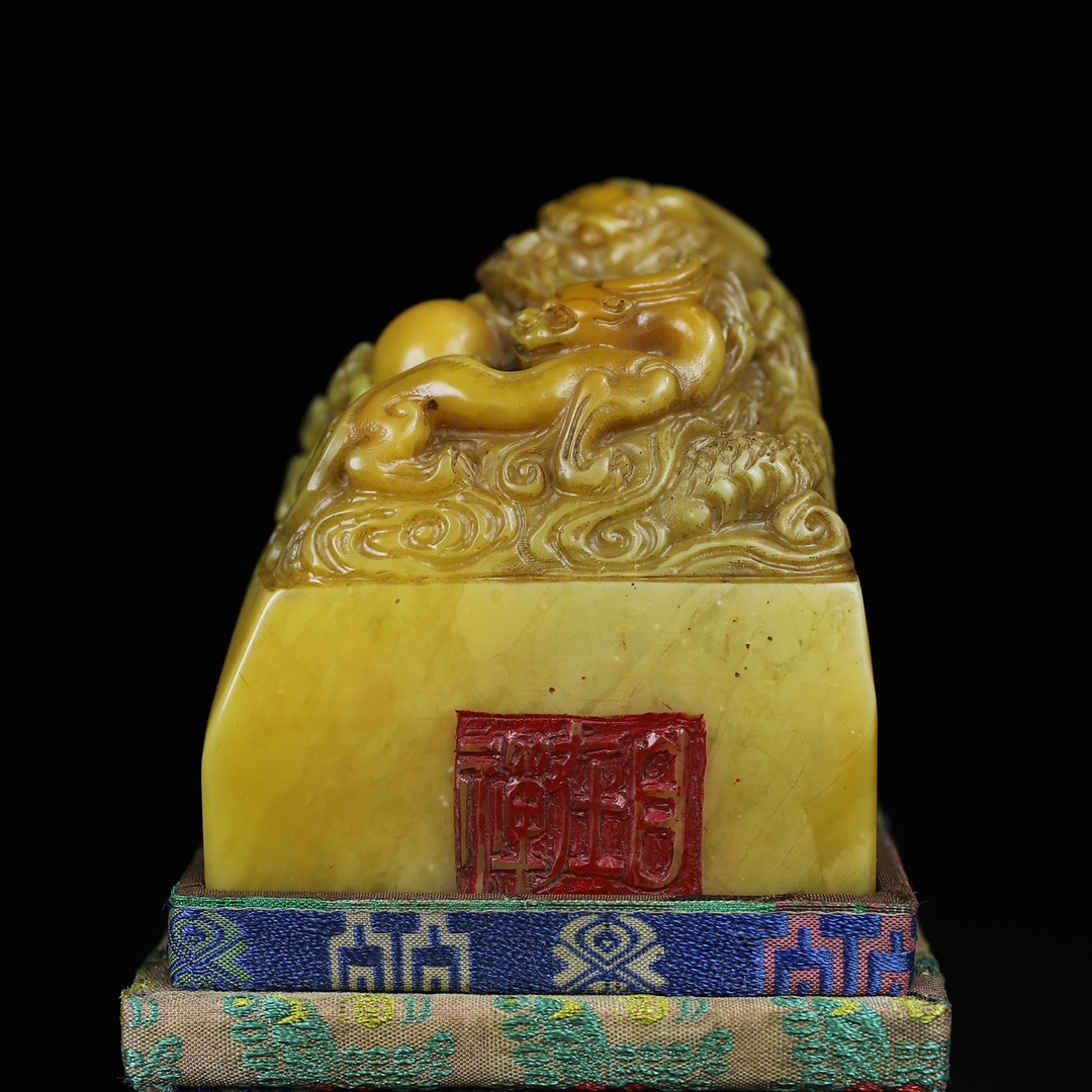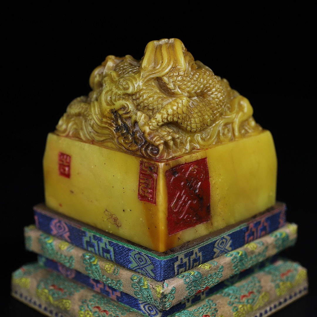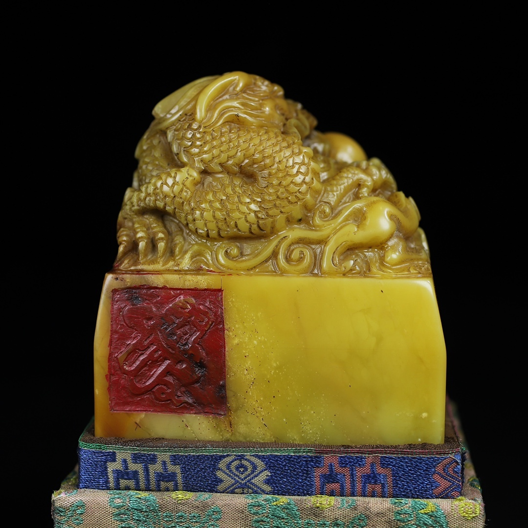 旧蔵 【清代篆刻家 文鼎】寿山石 田黄石 騰龍戯珠鈕 印鑑 天然石 手彫 篆刻 古印材 極細工 中国古玩 骨董品 古美味 211