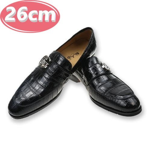 クロコダイルレザー ビジネスシューズ 最高級 ワニ革 クロコダイル 靴 メンズシューズ 革靴 ブラック 26.0cm 【n783】