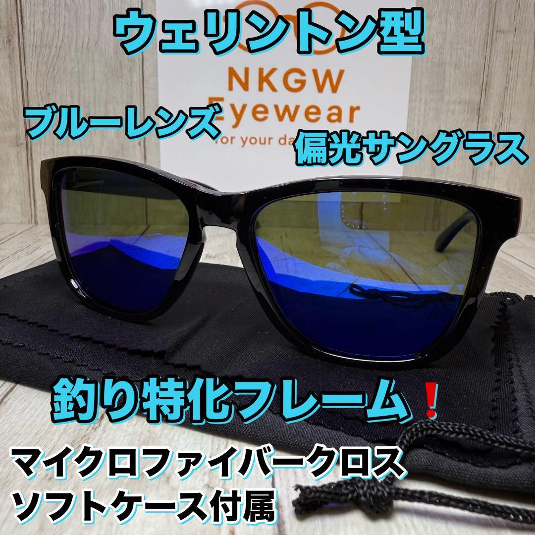 新品未使用品 ウェリントン型 偏光サングラス ブルーレンズ UV400