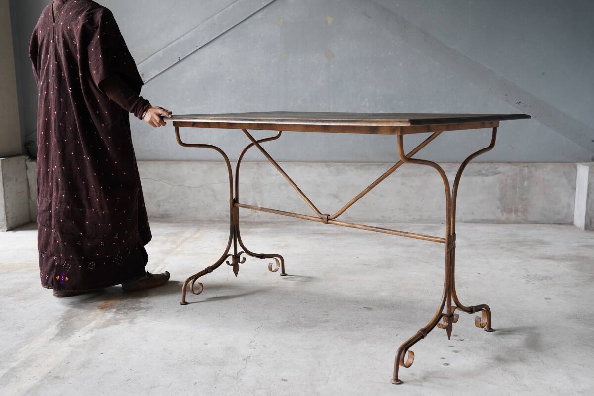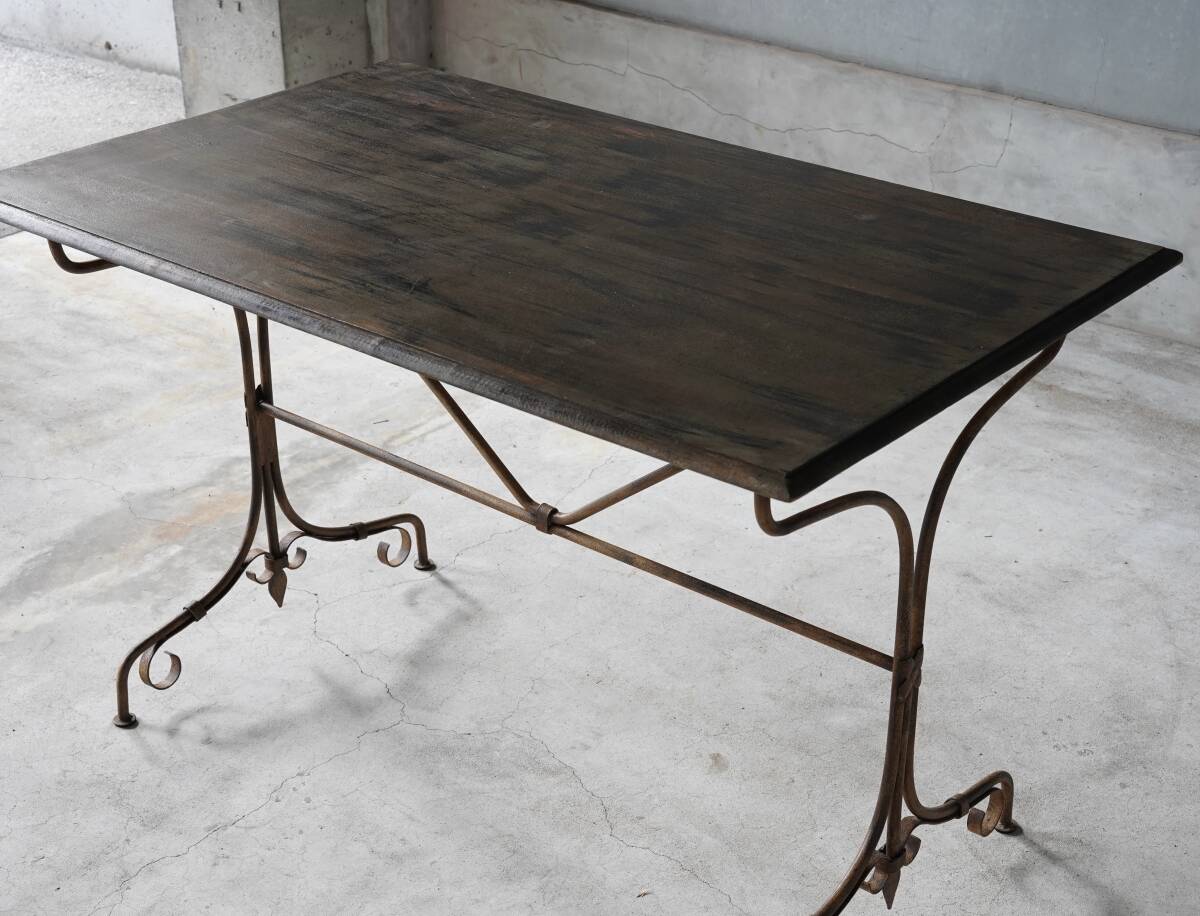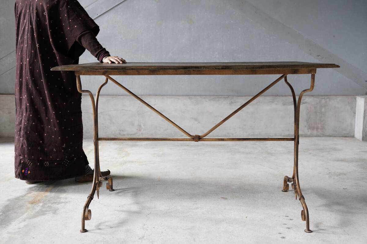 シャビーな鉄脚フレームもシャビーな天板で、存在感たっぷりです。