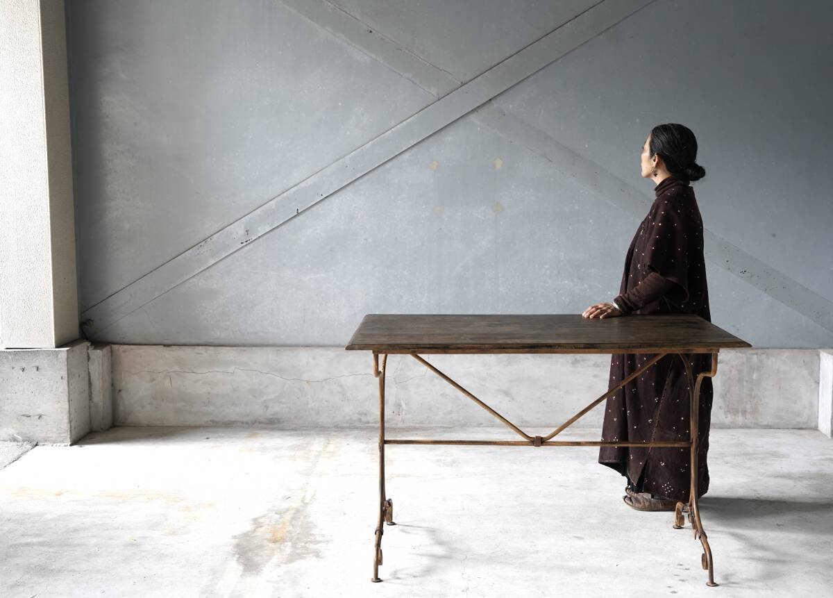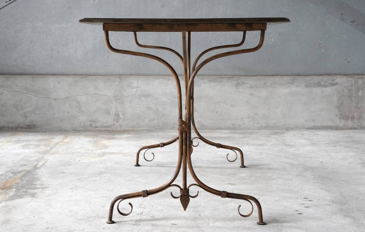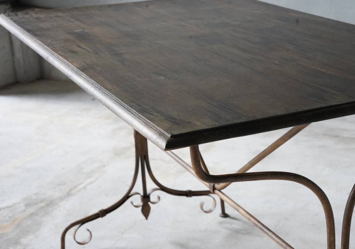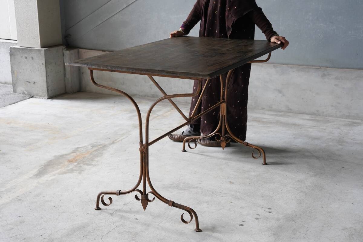 シャビーな鉄脚フレームもシャビーな天板で、存在感たっぷりです。