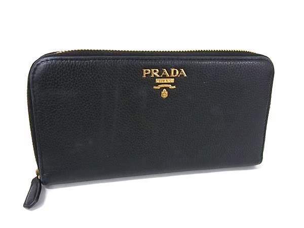 1円 ■美品■ PRADA プラダ レザー ラウンドファスナー 長財布 ウォレット 札入れ 小銭入れ カード入れ レディース ブラック系 FT3390