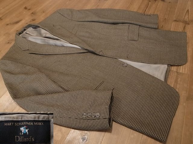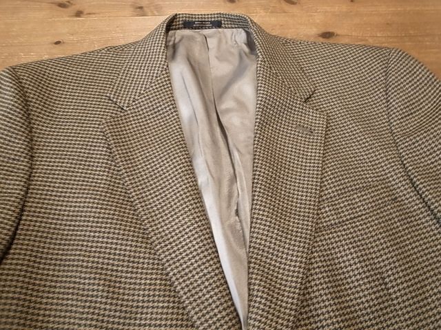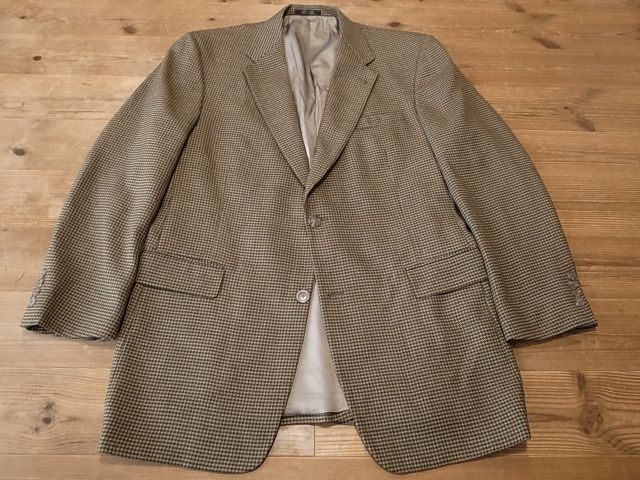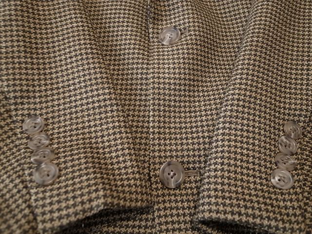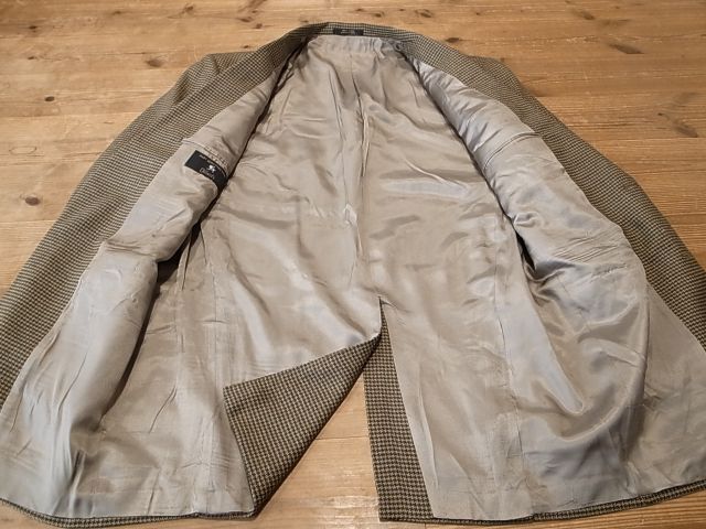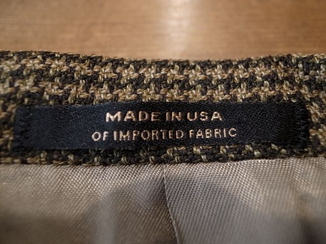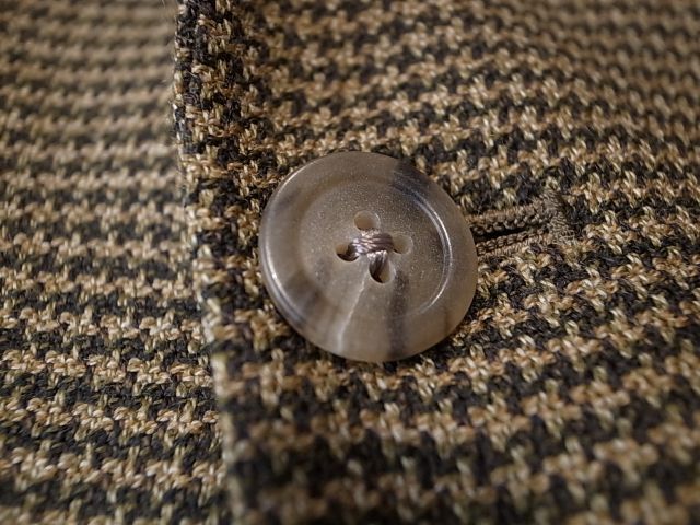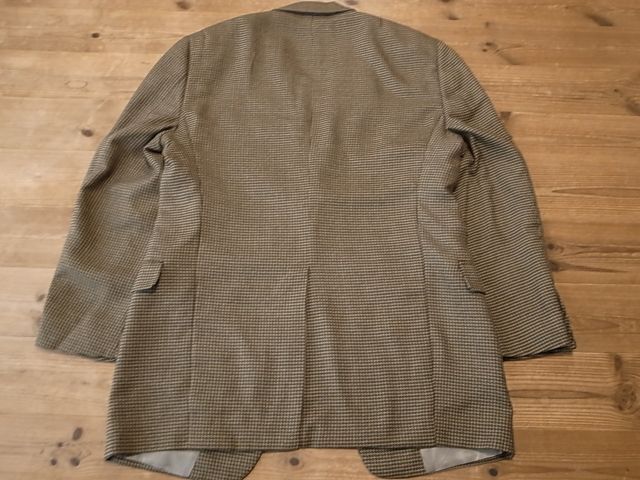◆ブランド 「HART SCHAFFNER MARX」 アメリカ古着 ●サイズ表記 42R 実寸サイズ XL相当 肩幅…49cm(肩先から肩先の間の長さ) 身幅…57cm(両脇を横直線に結んだ長さ) 着丈…80cm(後衿ぐり中央から後身頃裾) 袖丈…62cm(袖付けの肩先から袖先) ※平置き状態での素人採寸ですので、多少の誤差はご了承ください。 ●素材…ウール 秋冬春向き ●色…茶×ベージュ×こげ茶など 千鳥格子ピンチェック生地 ●ポケット… フラップポケット ●裏地…総裏仕立て ●ベント…センターベント ●製造国表記…USA ●状態…多少の使用感はございますが状態は良好です。 ★送料 全国一律 700円 佐川急便 (北海道900円 沖縄その他離島1700円) ※複数ご購入の場合、同梱発送可能です。 |