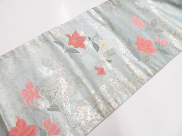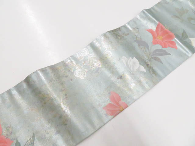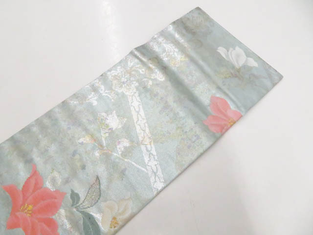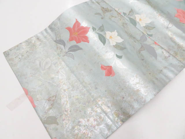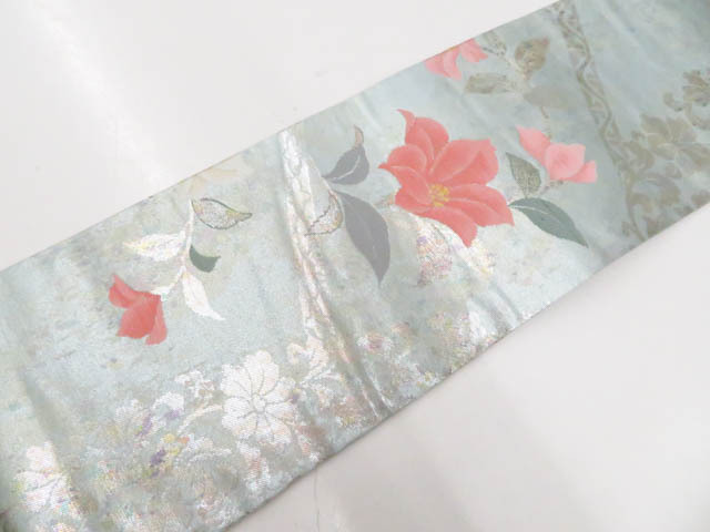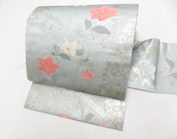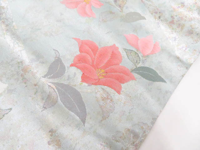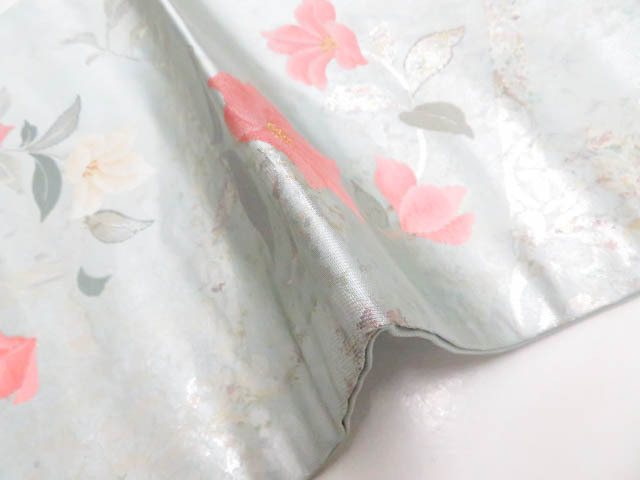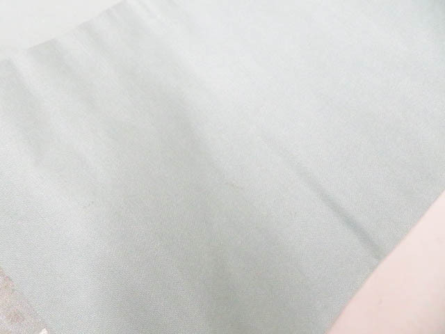 リサイクル商品の為、太鼓裏、無地場に薄汚れがございますがご着用いただけると存じます。 地色は 水色です。 1枚目の画像が近いお色かと思われます。 素材は正絹です。 |
