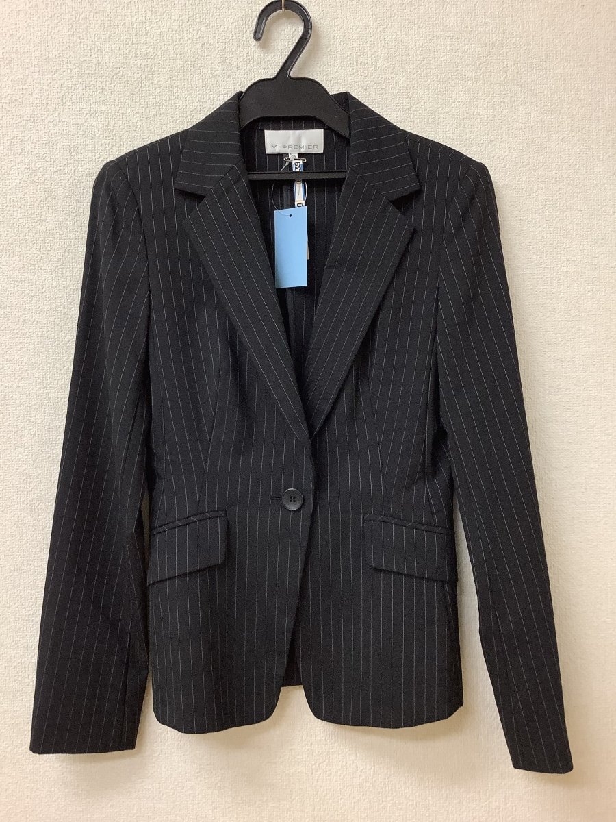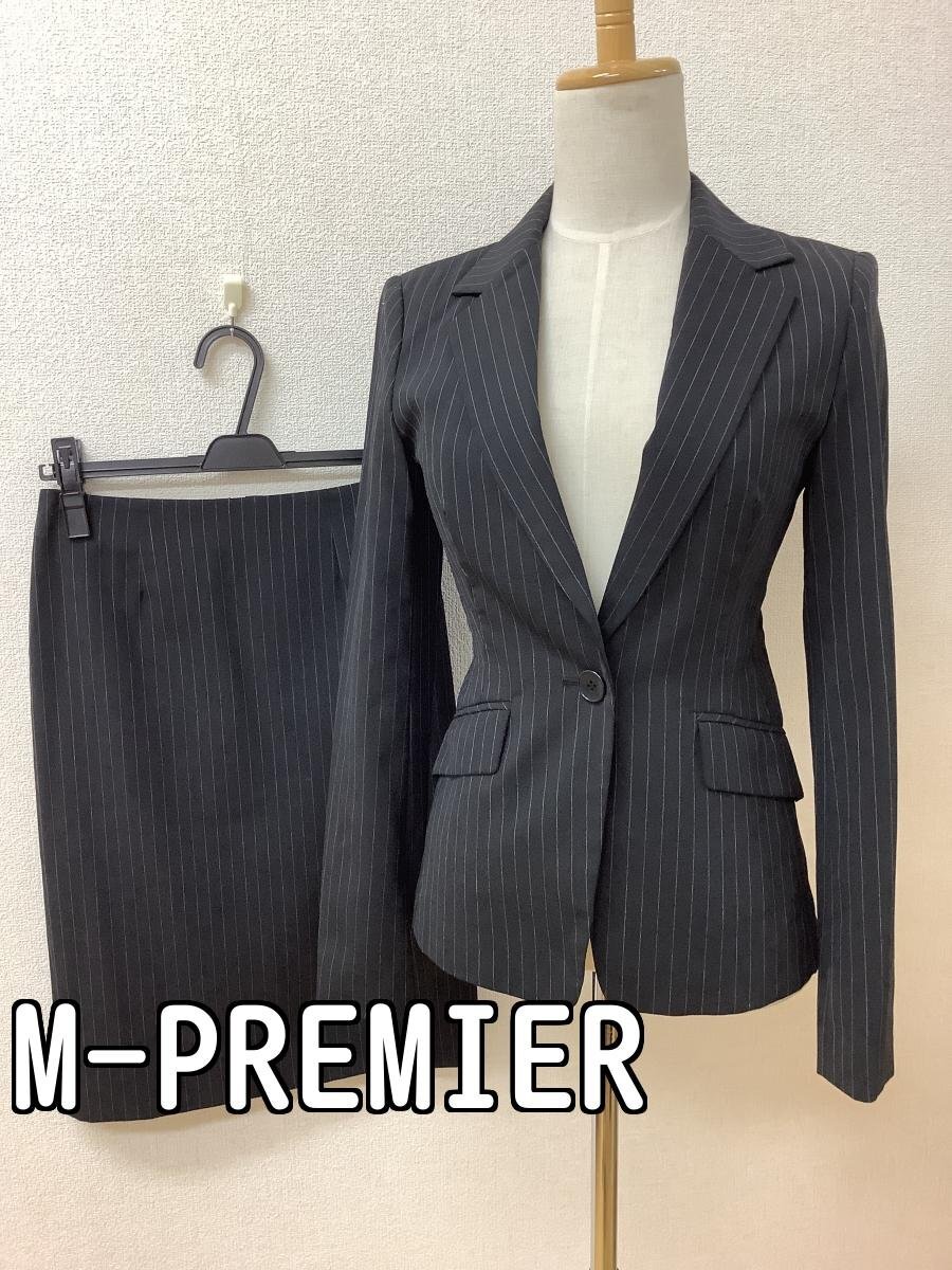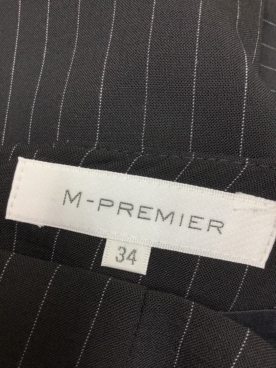 | 管理番号:10^138878 エムプルミエ (M-PREMIER) 黒に白ストライプスーツ 表示サイズ:上下とも34 実寸(参考)