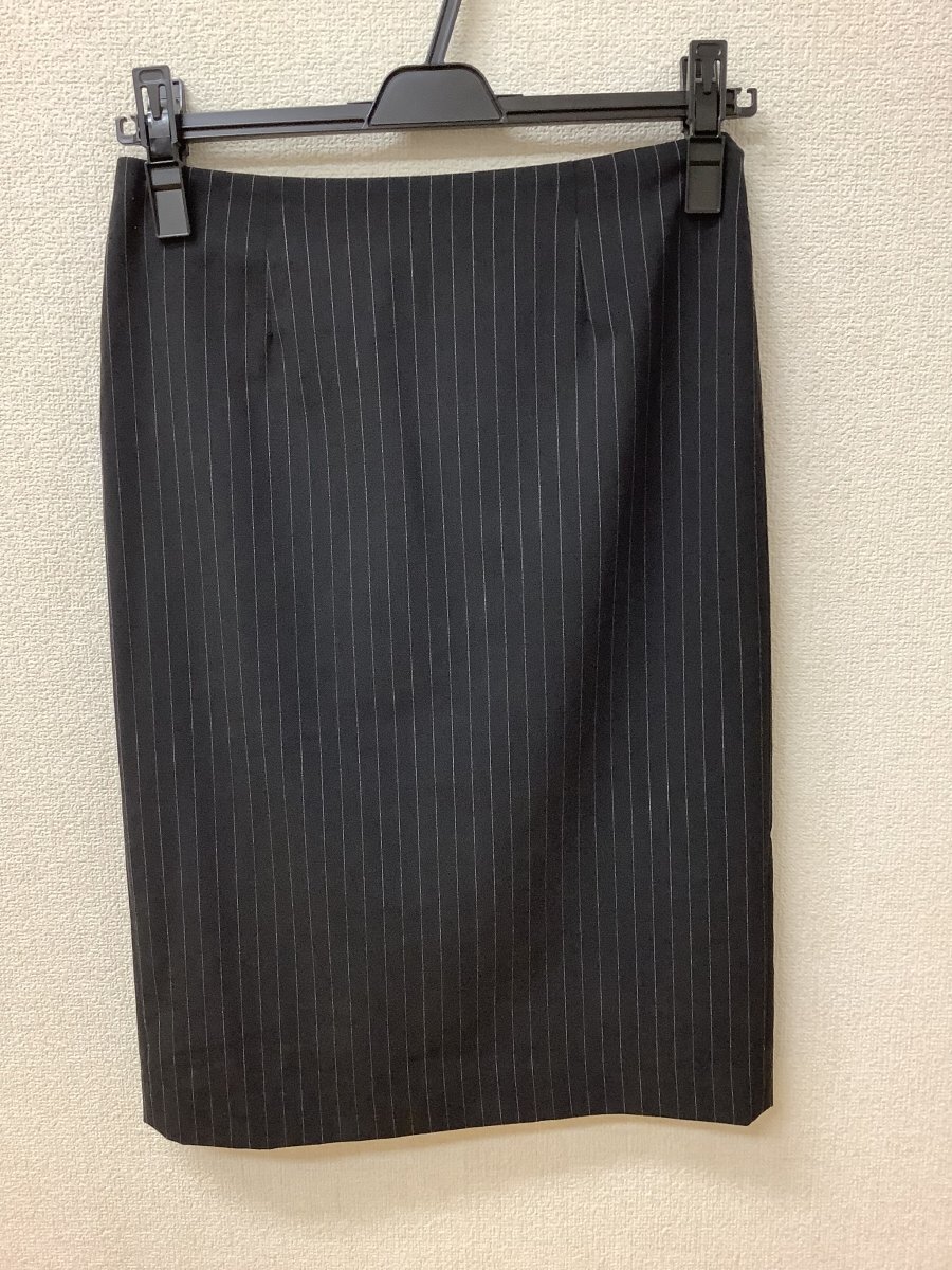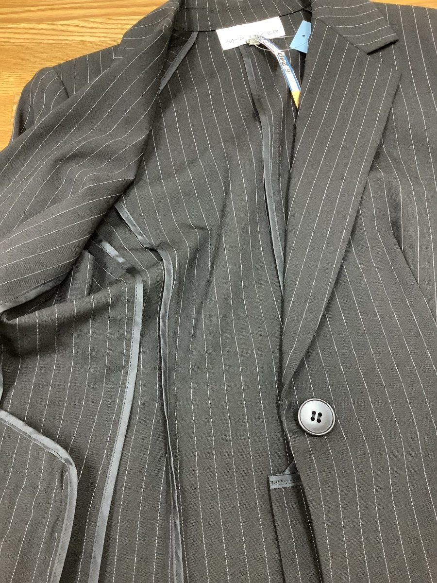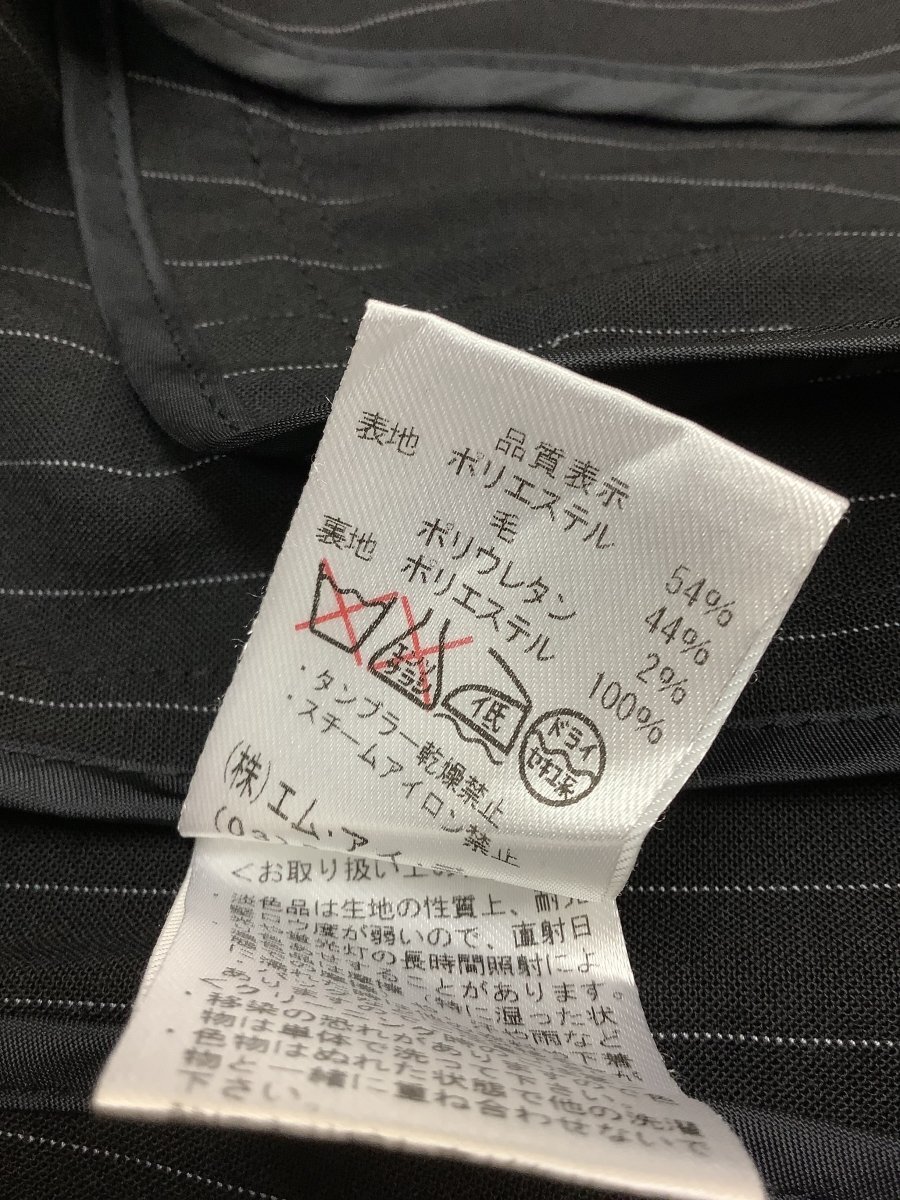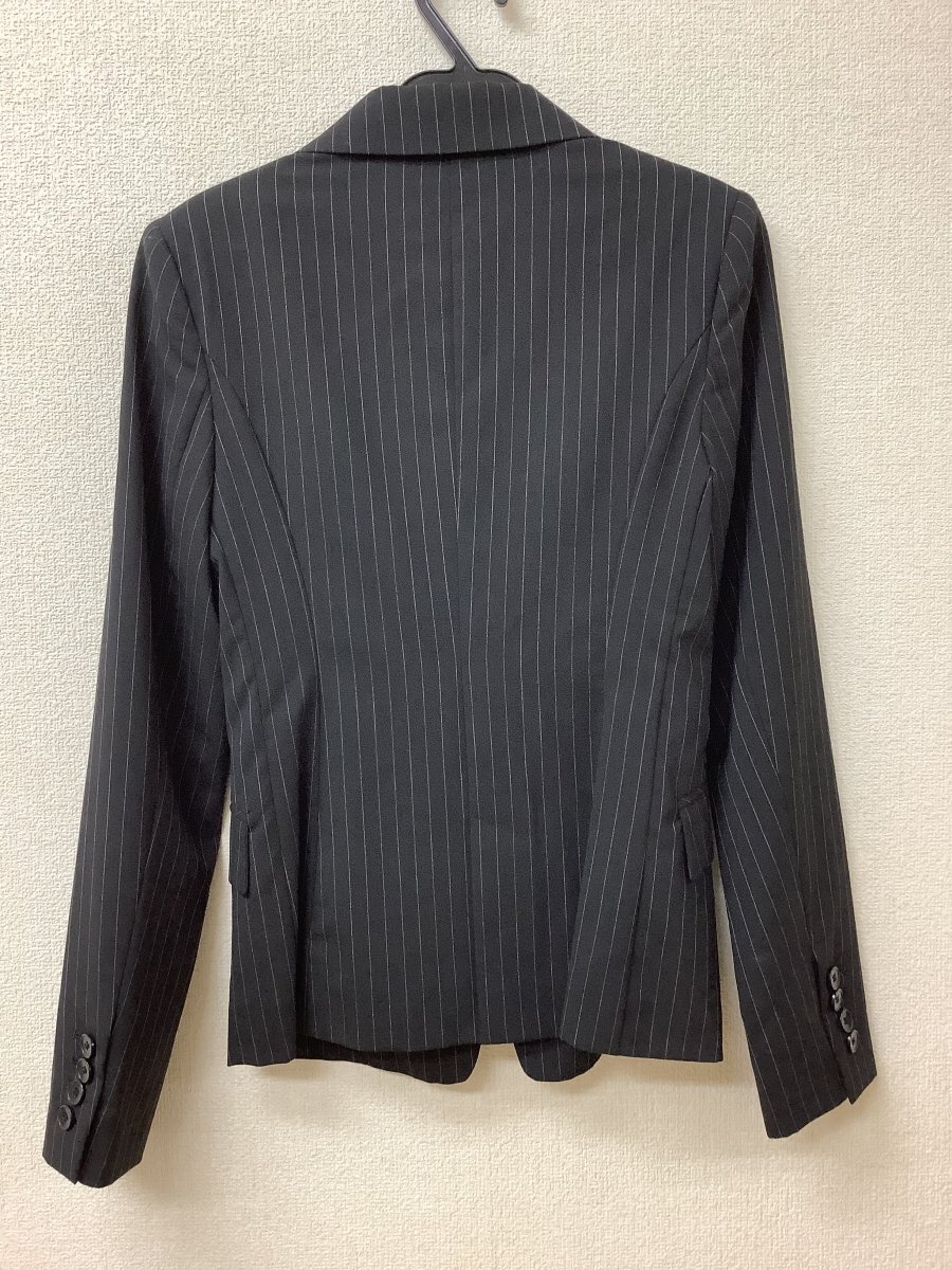 | 管理番号:10^138878 エムプルミエ (M-PREMIER) 黒に白ストライプスーツ 表示サイズ:上下とも34 実寸(参考)