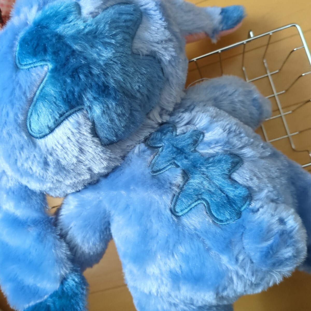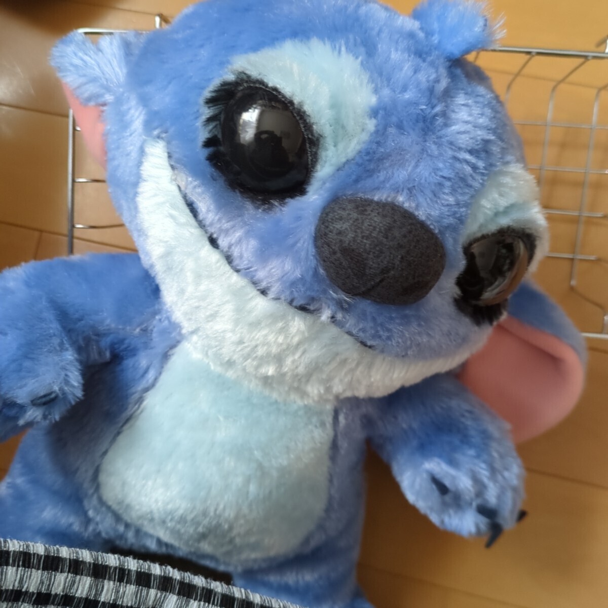 左の 実写 版 スティッチ は メルカリで新品を購入しました(。・ω・)タグ外して目の周りを黒くし、鼻の穴、鼻のぶつぶつをリメイクして描いてあります