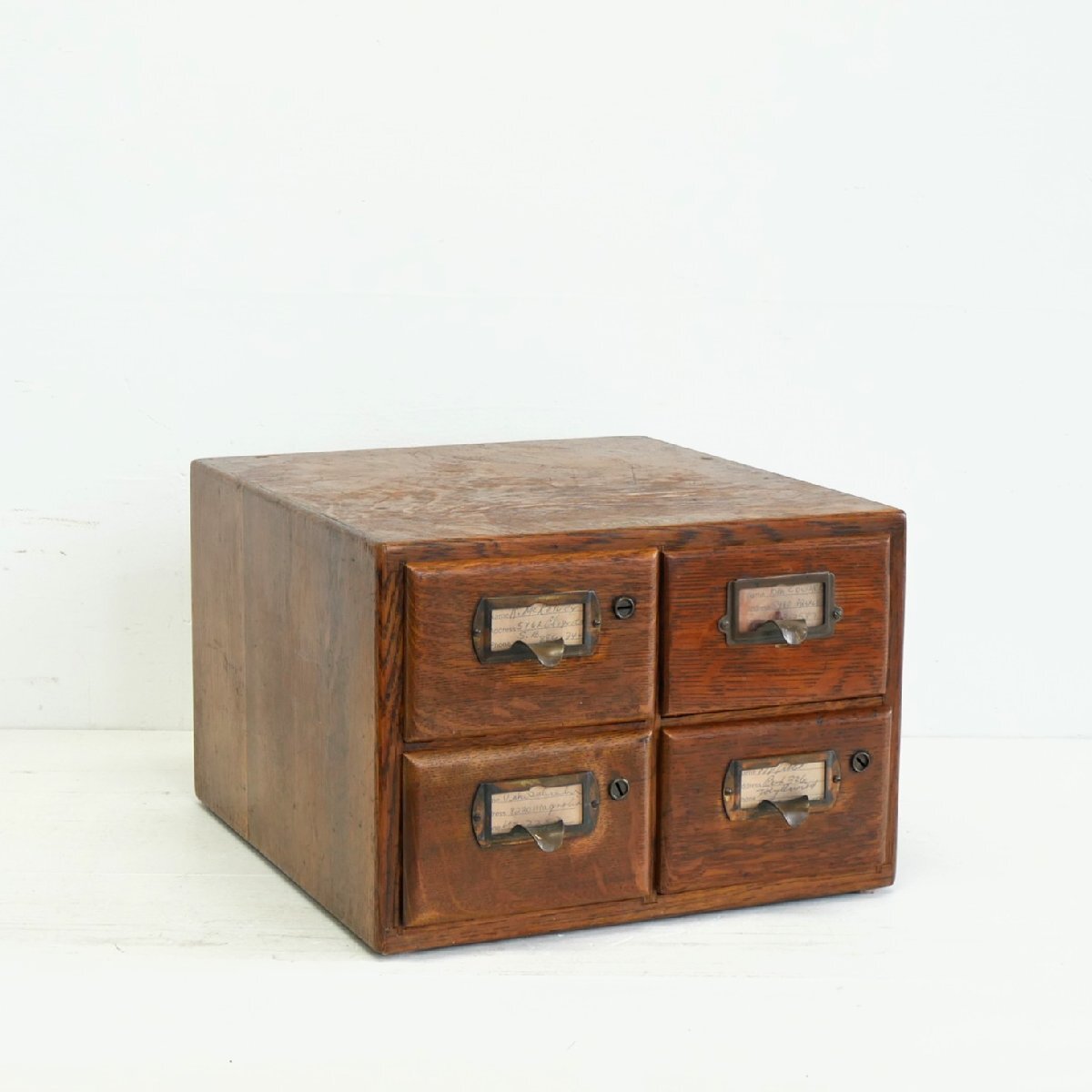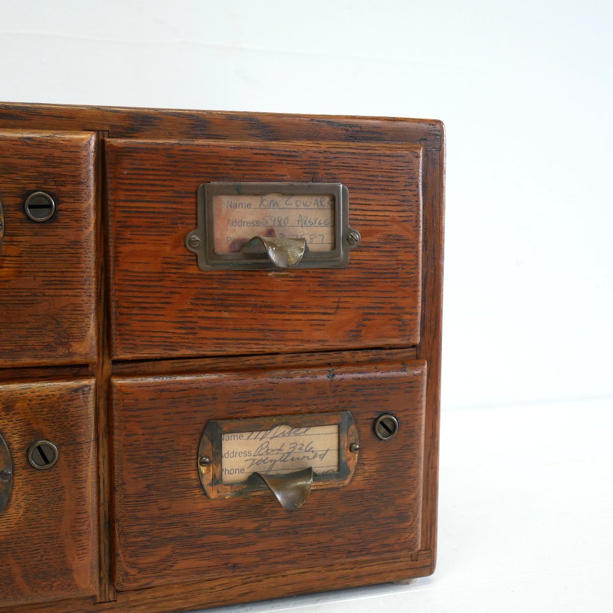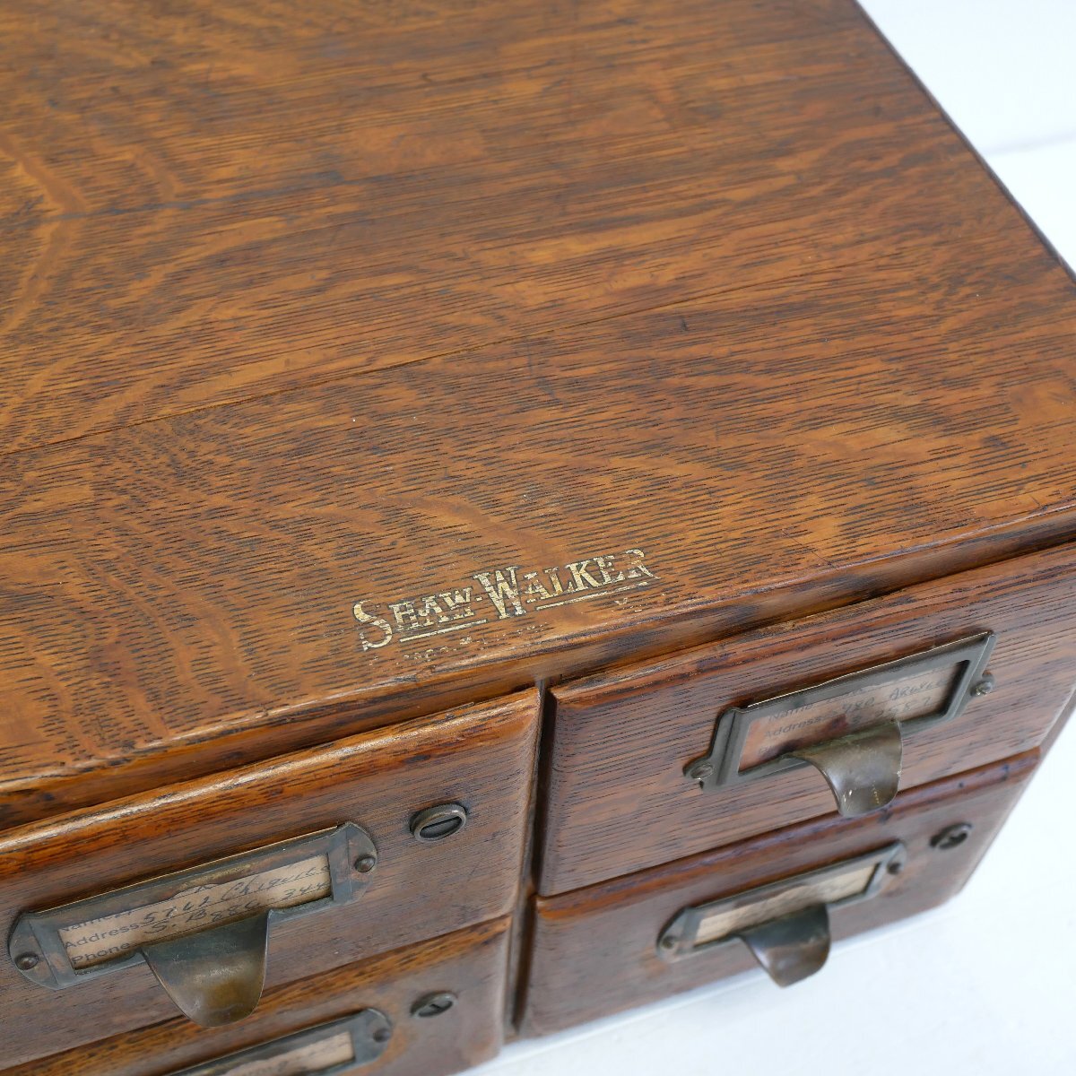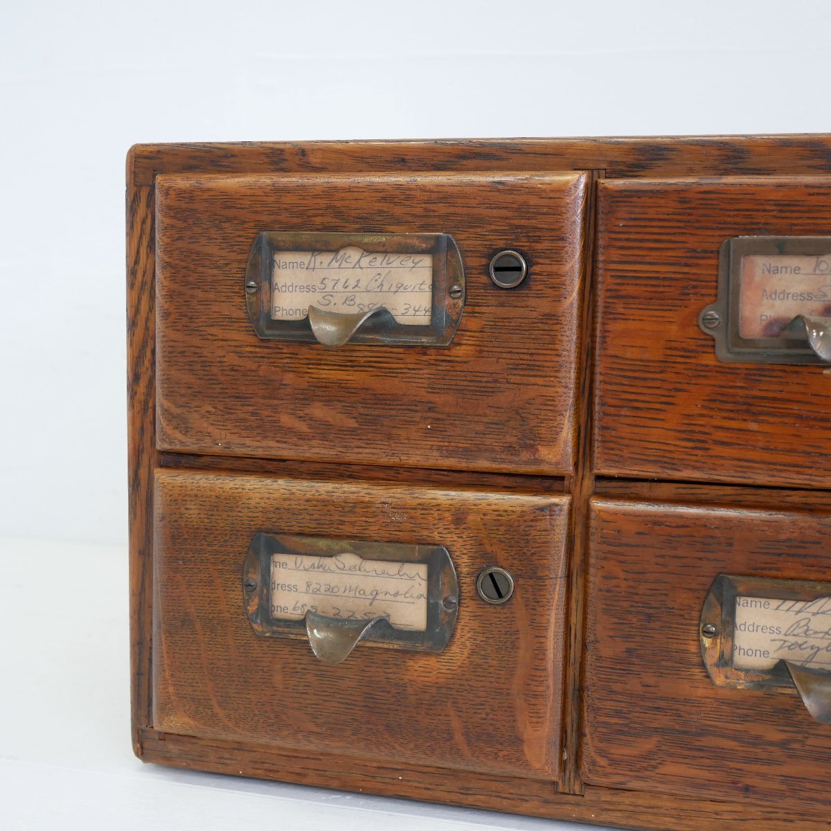 | 商品説明 explanation | 1910年から1930年代頃の木製(オーク材)カードケースです。 「THE SHAW-WALKER CO.」製 1899年にミシガン州で創業したオフィス家具メーカーです。 取っ手がジャパンカラーになっています。 ※ジャパンカラーとは1900年初頭から1930年代頃までに見られるカッパー色を用いた仕上げのことです。アメリカでは「JAPANNED」と呼ばれています。 重厚感のあるヴィンテージケースを、カードなどの収納にいかがでしょうか。 |