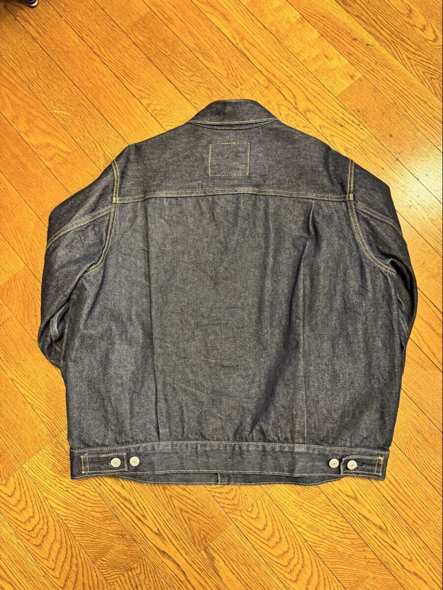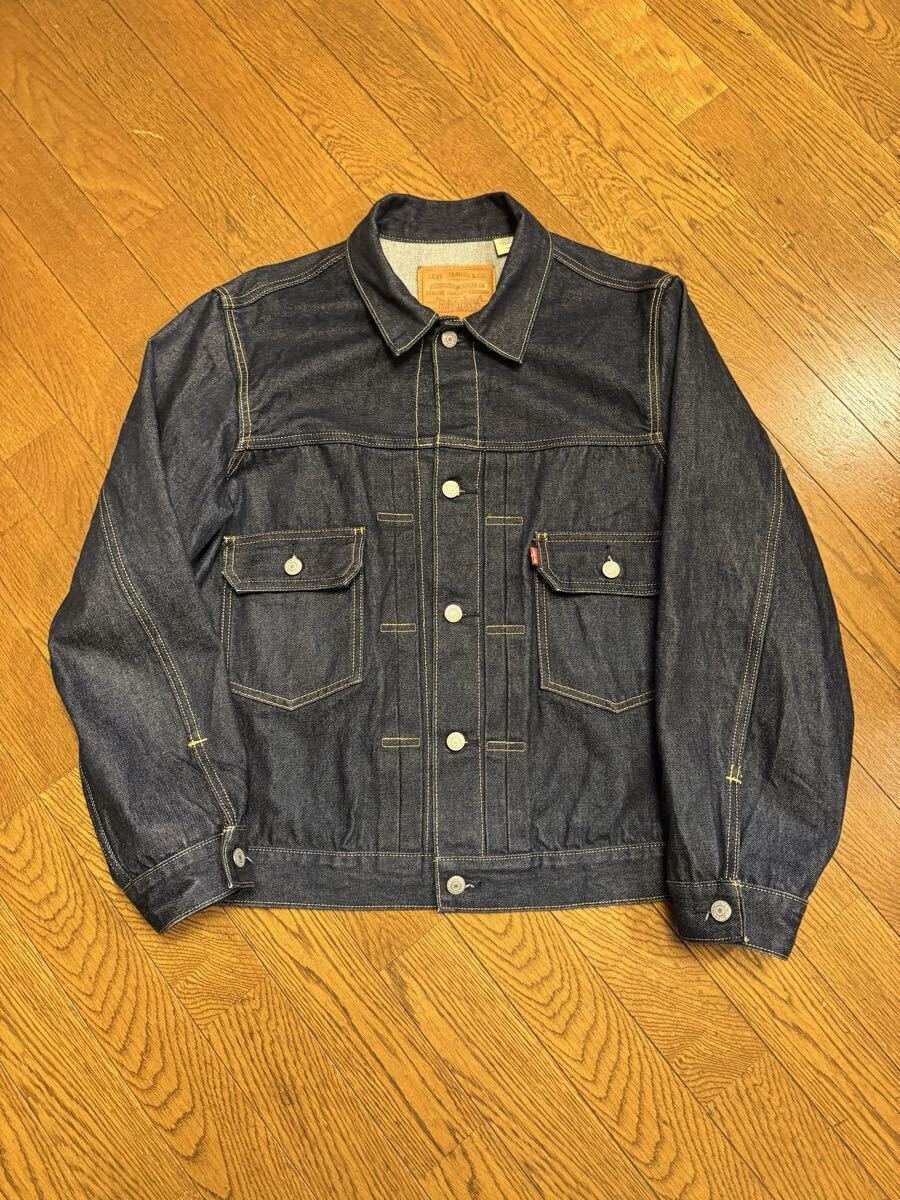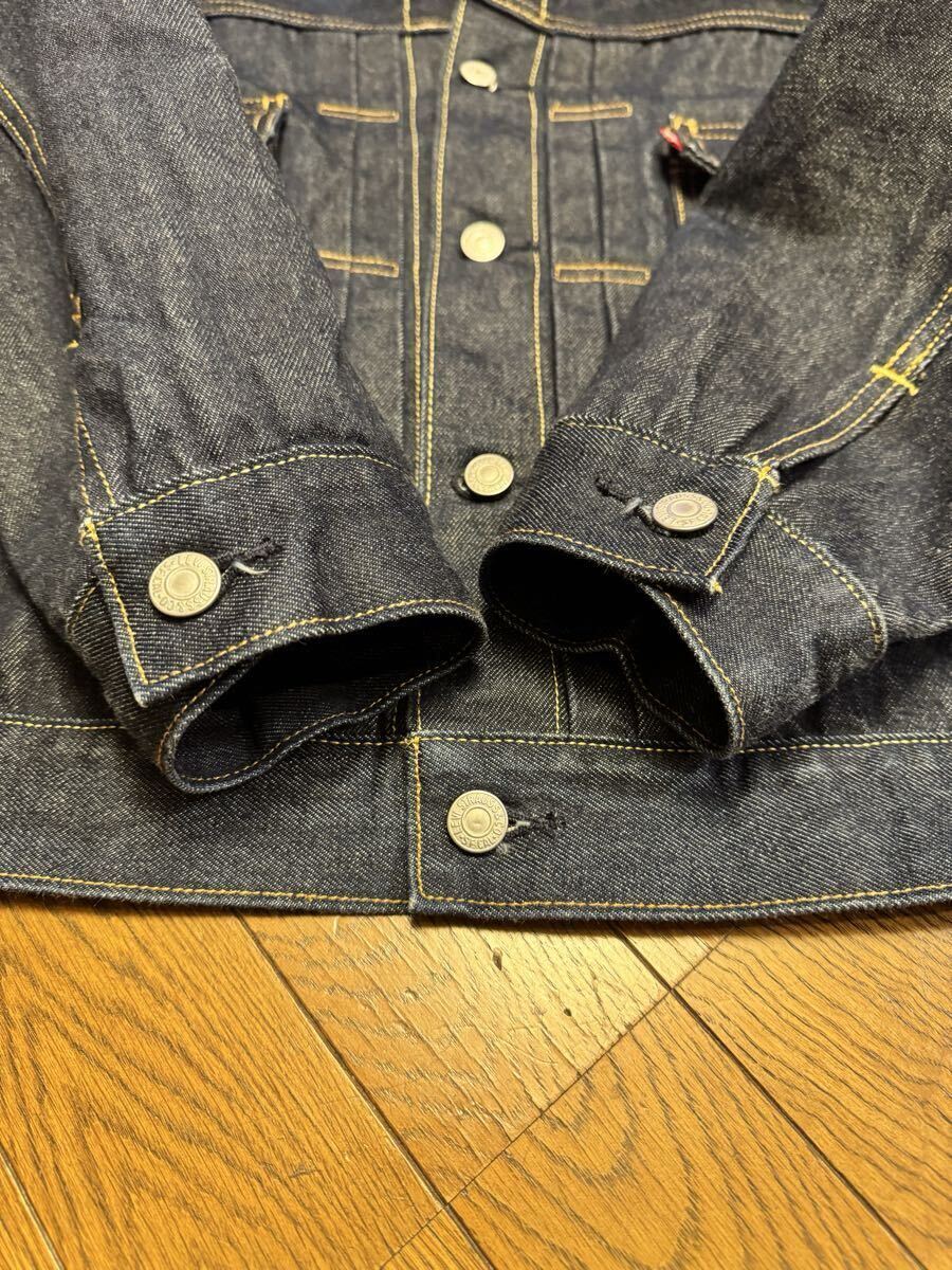 ジャーナルスタンダード別注のリーバイスのセットアップです。表記サイズはセカンドジャケットはLで、501はW36L30です。高温洗浄、高温乾燥を3回繰り返したので、これ以上縮む事はあまり無いと思います。購入後数回の着用で保管してあったものです。糊付けして数十回着用しましたがオーバーサイズの為着用しなくなってしまい保管してあった物です。何となーくうっすらとシワなど入っておりますが、ほぼ真紺状態です。