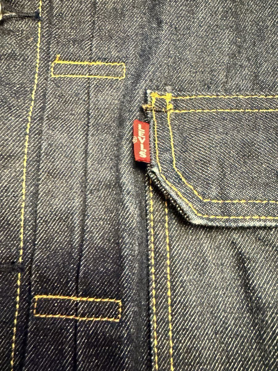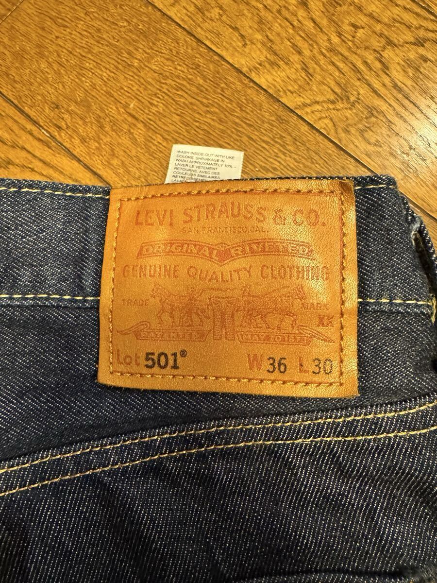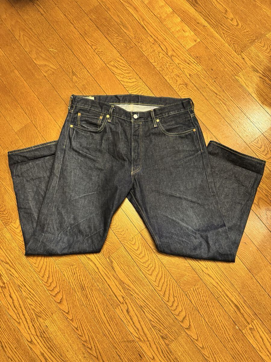 ジャーナルスタンダード別注のリーバイスのセットアップです。表記サイズはセカンドジャケットはLで、501はW36L30です。高温洗浄、高温乾燥を3回繰り返したので、これ以上縮む事はあまり無いと思います。購入後数回の着用で保管してあったものです。糊付けして数十回着用しましたがオーバーサイズの為着用しなくなってしまい保管してあった物です。何となーくうっすらとシワなど入っておりますが、ほぼ真紺状態です。