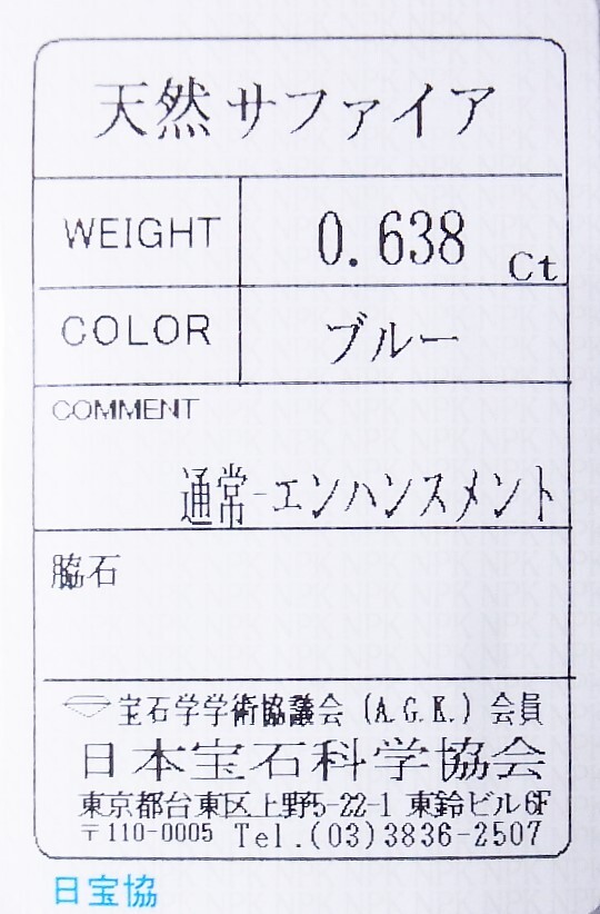 | 商品説明 | GREEN BLUE SAPPHIRE AUSTRALIA 0.63CT サファイアは説明の必要の無いほど有名な石ですが、本品はごく僅かにグリーンを帯びたブルーが美しいオーストラリア産サファイアです。 本品は石のクオリティは良好で、使いやすいプロポーションはジュエリー素材にお薦めです。 尚、本品にはソーティングが付属します。 宝石名:グリーンブルーサファイア/GREEN BLUE SAPPHIRE 色 :グリーンブルー/GREEN BLUE 重量 :0.63CT サイズ:5.00×5.00×2.85 品質 :VS 処理 :加熱処理/HEATED 産地 :オーストラリア/AUSTRALIA |