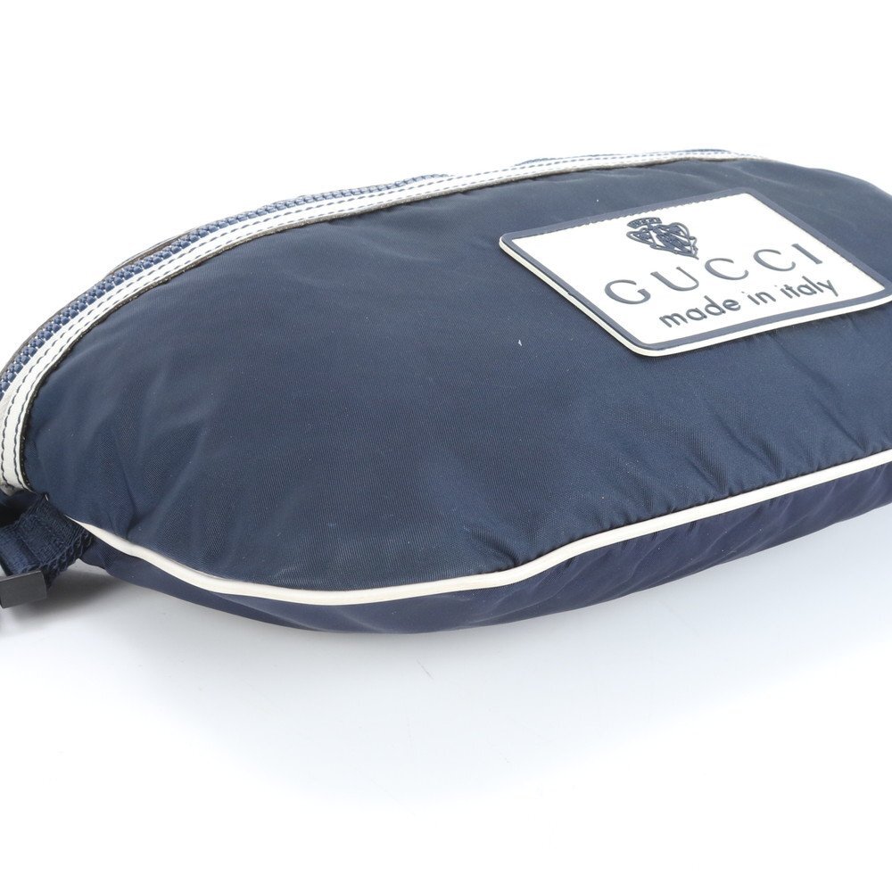 1円■極美品■グッチ■クレスト ロゴ 2WAY ボディバッグ 斜め掛け ボディ ウエストポーチ 211128 ショルダー ネイビー メンズ RUE DB2-10
