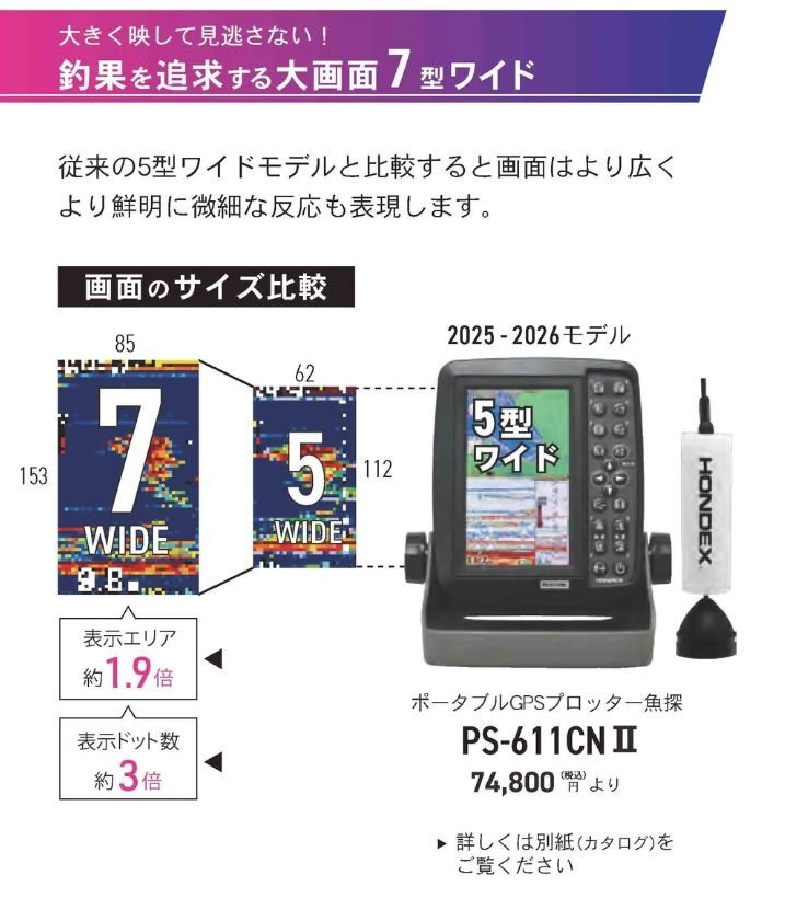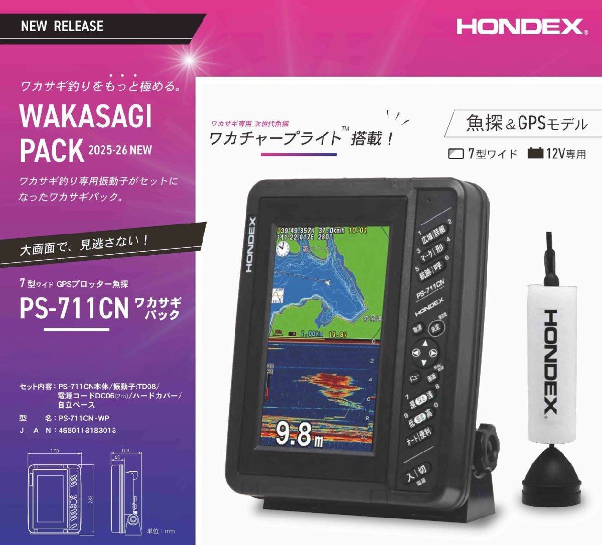 7型ワイド GPSプロッター魚探 PS-711CN ワカサギパック