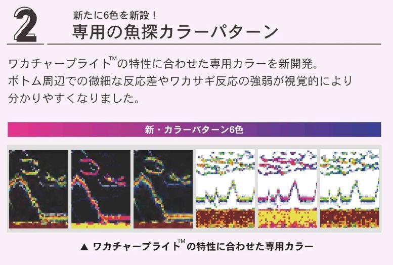 ボトム周辺での微細な反応差やワカサギ反応の強弱が視覚的により分かりやすくなりました。