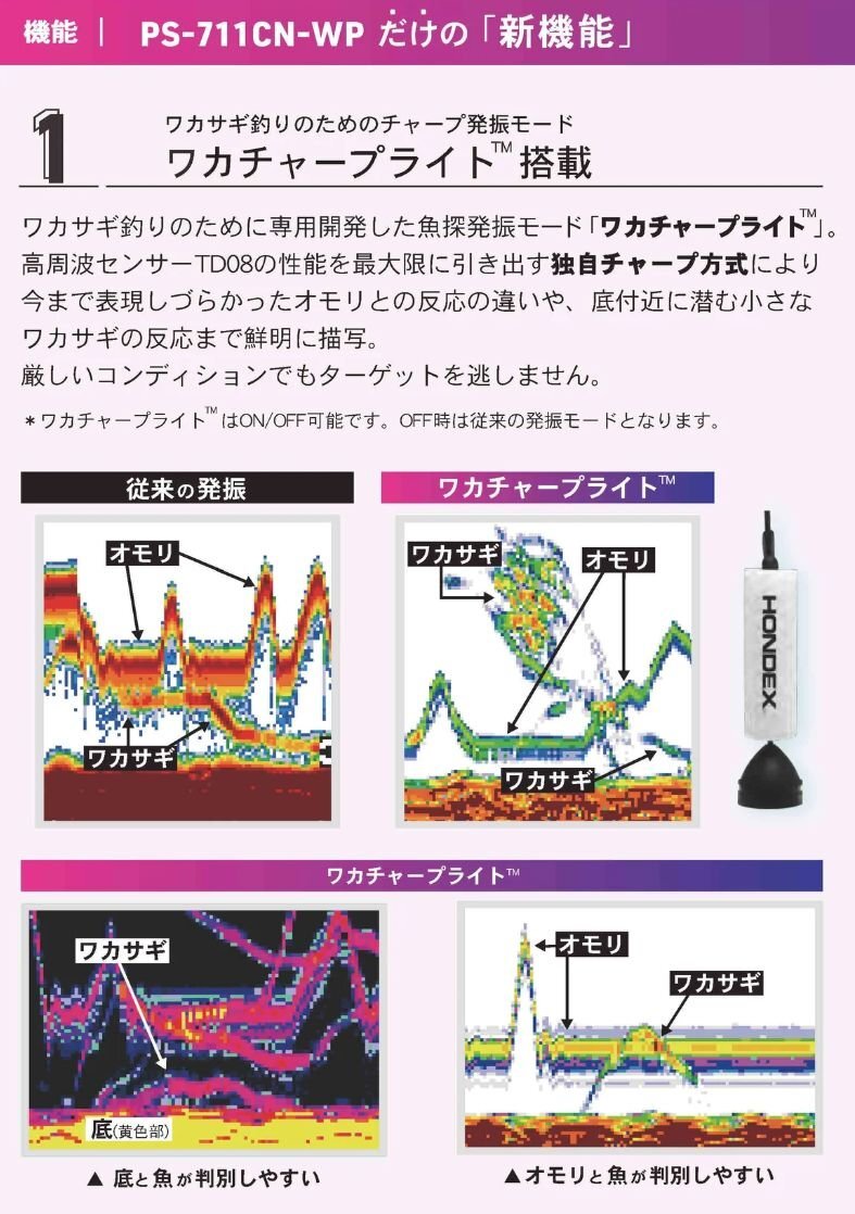 高周波センサーTD08の性能を最大限に引き出す独自チャープ方式により今まで表現しづらかったオモリとの反応の違いや、