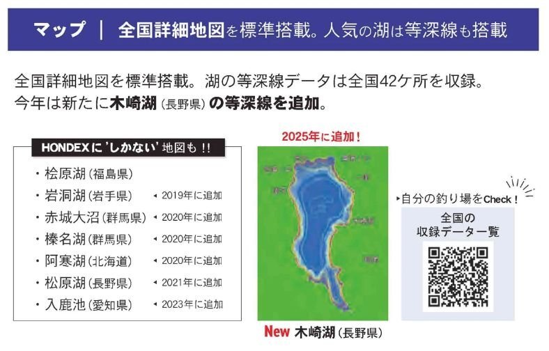 今年は新たに木崎湖(長野県)の等深線を追加。