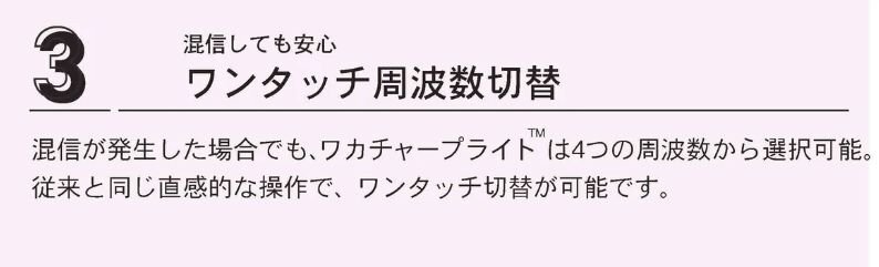 混信が発生した場合でもワカチャープライトは4つの周波数から選択可能。