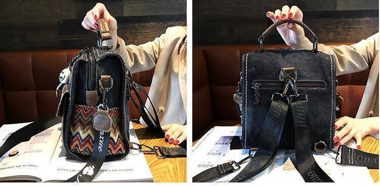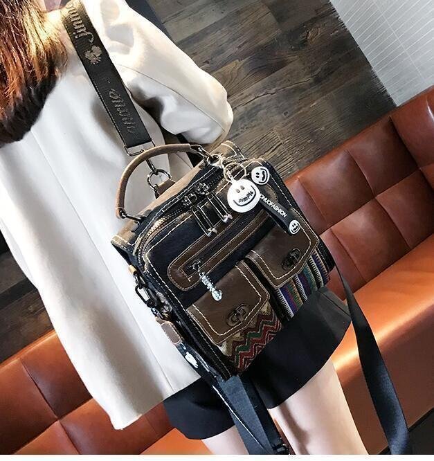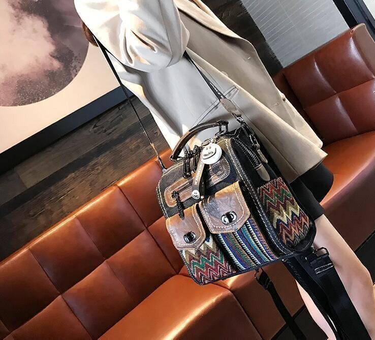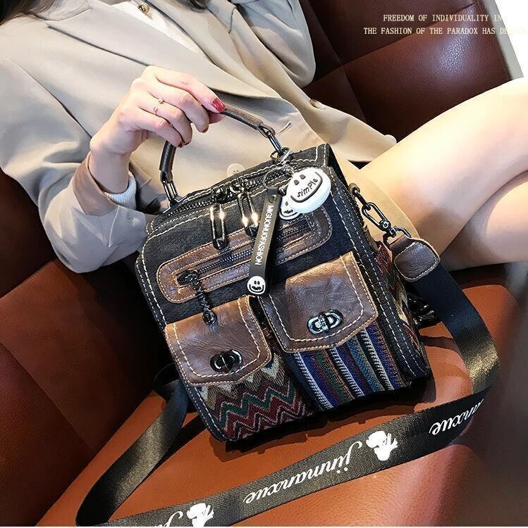 新作★超人気★レトロエスニック牛革3斜め掛けデニムでワンショルダーバッグ
