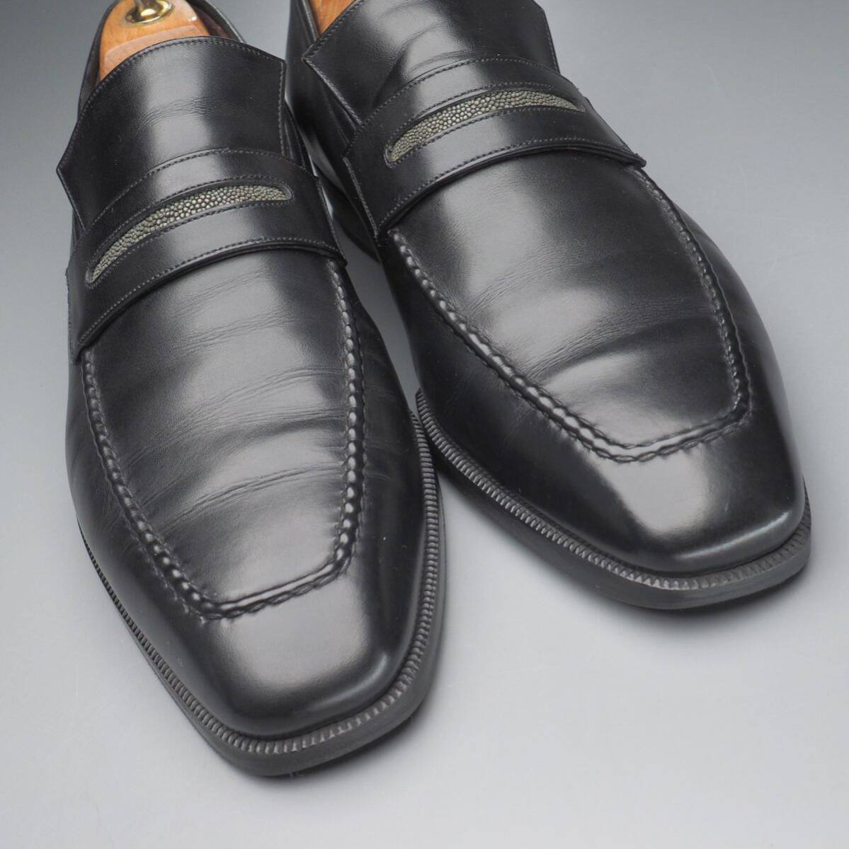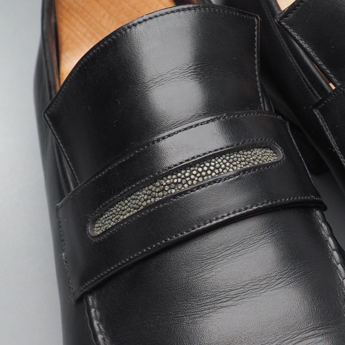 | GS5385//*オーベルシー/AUBERCY*メンズ8/ガルーシャ/エイ革装飾/コインローファー/ペニーローファー/レザースリッポン/革靴/黒/ブラック | |||