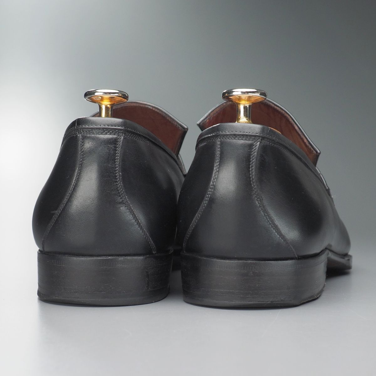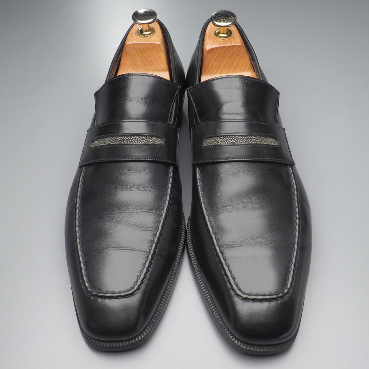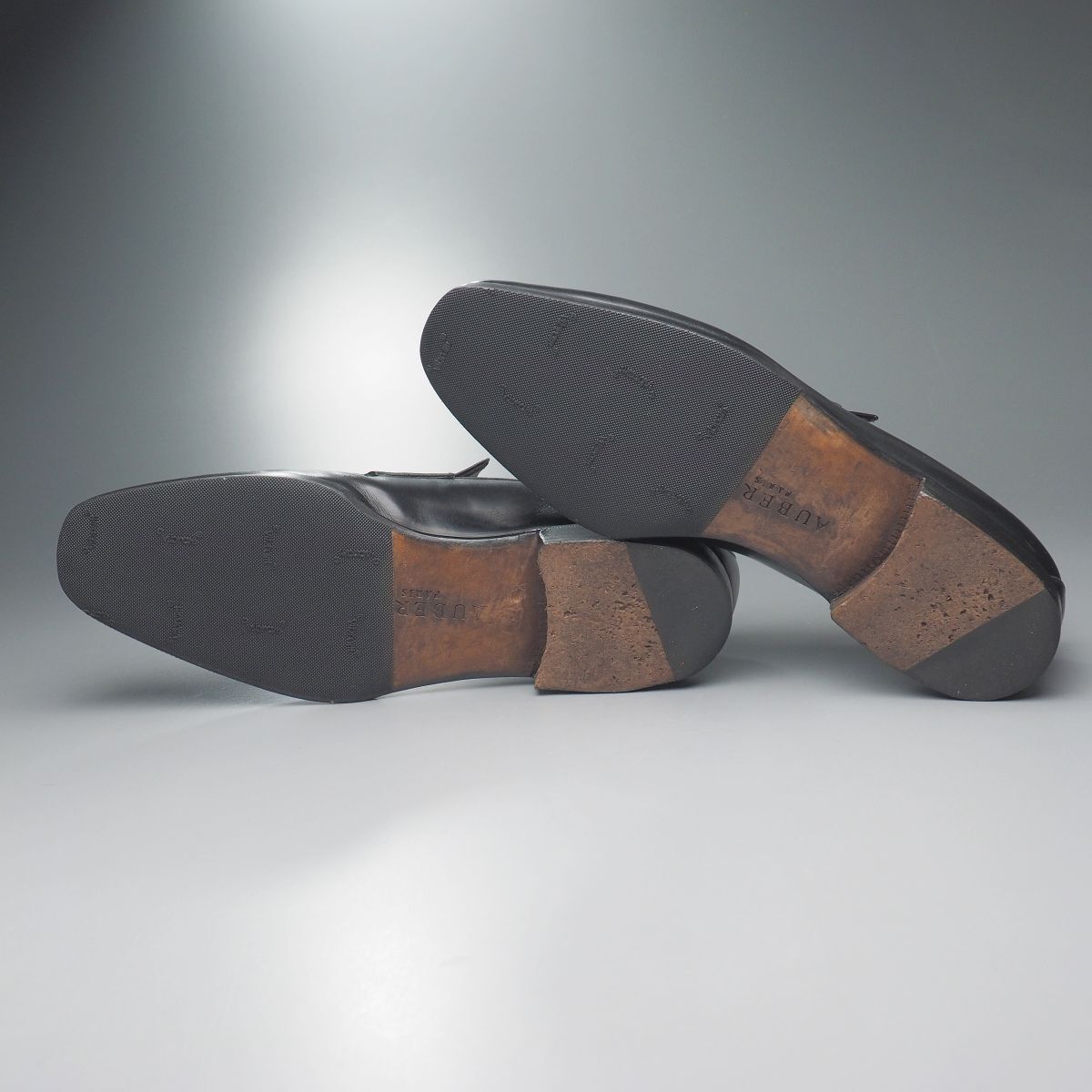 ベルルッティやコルテと並び、フランスの御三家ABCとしてその名を知られる高級紳士靴ブランド「オーベルシー/AUBERCY」の一足です。 ソックネームから察するに「L’ANGE NOIR」と称されるショップやブランドなどの別注品と見られます。 柔軟でしなやかな手触りを持つきめの細かな黒のスムース革をアッパーに用い、サドルのスリット部分にガルーシャ(エイ革)の装飾を施した小粋な顔立ちのコインローファー。 主張が控えめで使い勝手がよく、多彩なスタイリングに応用可能です。 アウトソール:レザー×ラバー トップリフト:レザー×ラバー ライニング:レザー 付属:箱(擦れや汚れあり) ※撮影用のシューキーパーは付属致しません。 ※本物の商品ですのでご安心の上オークションをお楽しみ下さい。 ※タイトル頭の英数字は弊社の管理番号です。 ※ほかにも多数の商品を出品しています。 ※同梱に関しましては「まとめて取引」でのみ対応可能です、その他の方法での同梱対応は出来かねます。 (※商品の特性上、同梱対応出来ない商品もございますので予めご了承下さい。) |