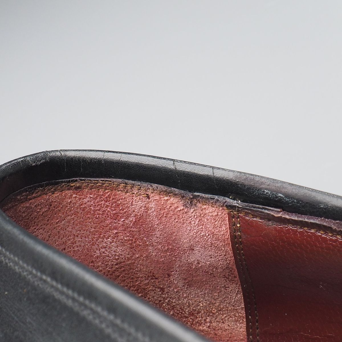 【コンディション詳細】 アッパーのシワ、薄い擦れキズ、履き口のパイピングに擦れやヒビ割れ、インソールやライニングの擦れが見られますが、その他気になるようなダメージ等なくこれからも気持ちよくご愛用いただけます。 アウトソールは前面にラバーの半張りが施され、ヒールには3mm程度の摩耗がございます。 |