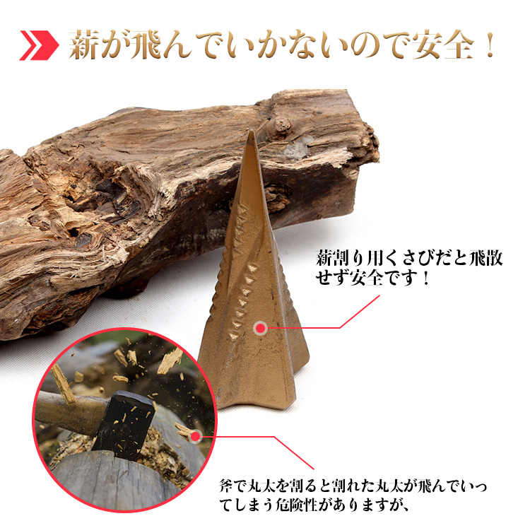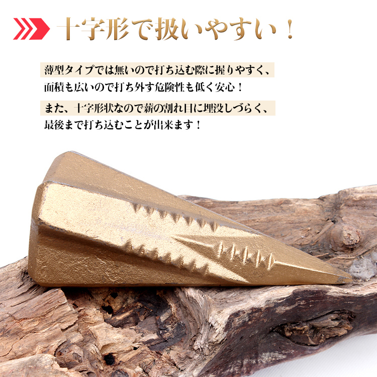 ■十字形状なので埋没しづらく、最後まで打ち込むことが可能!【商品内容】:薪割り用くさび