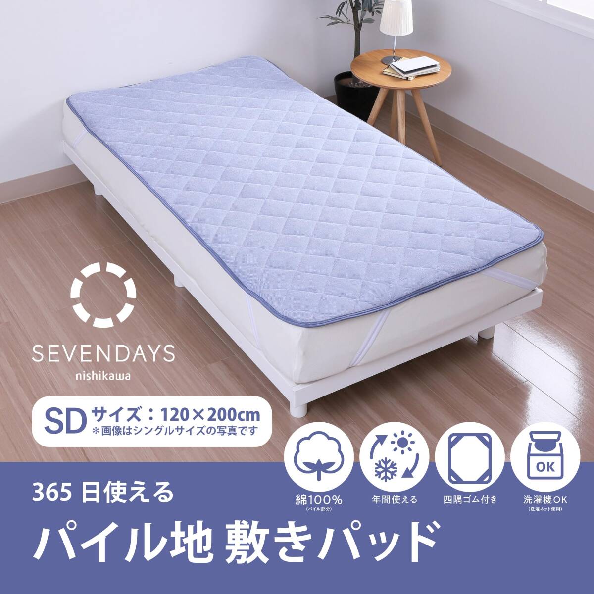 nishikawa【西川】 SEVENDAYS パイル地 敷きパッド セミダブル 洗える 綿100% 365日使える 1年中使える タオル地 ネ