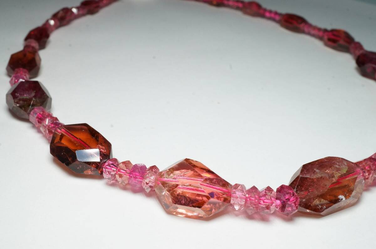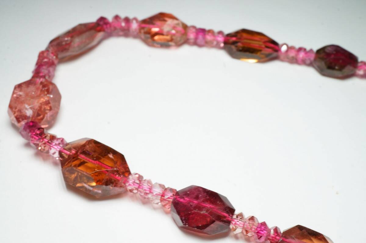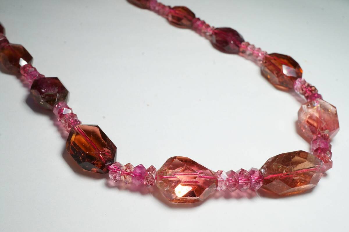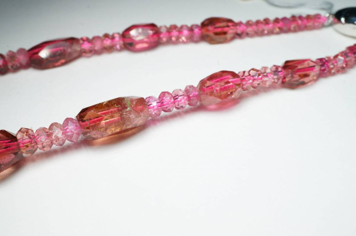 | 希少!昔の在庫なので上質品!ピンクトルマリンが綺麗な上質ブラジル産トルマリンカットルースネックレス高級宝飾品43cm | |||||||||||