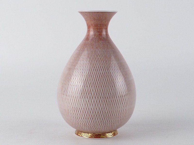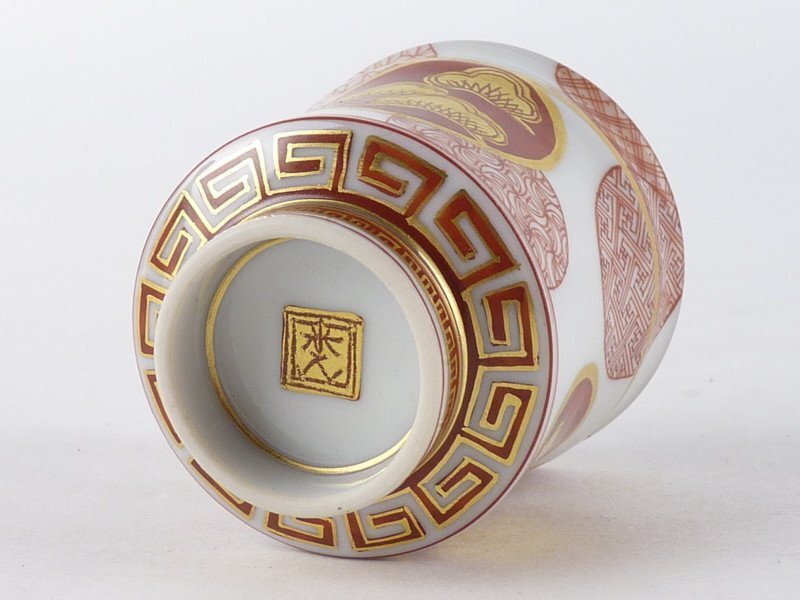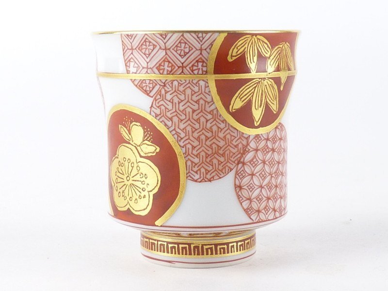 【扇屋】米久和彦「赤網手 徳利」「赤繒金襴手丸紋チウシ 松竹梅文 盃」共箱 2点 九谷焼