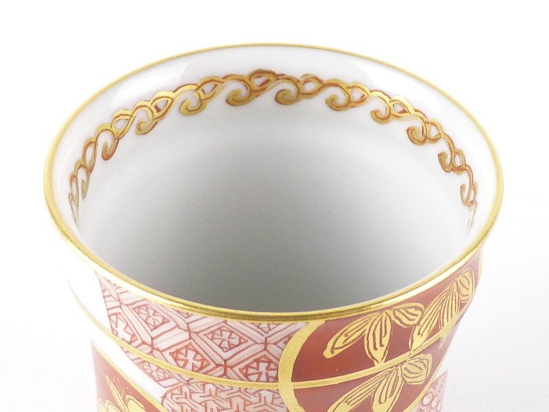 【扇屋】米久和彦「赤網手 徳利」「赤繒金襴手丸紋チウシ 松竹梅文 盃」共箱 2点 九谷焼 L-2