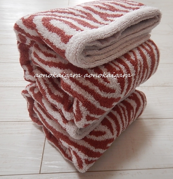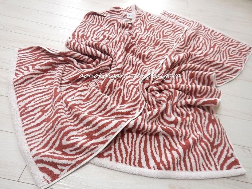 新品■今治産■ふっかり■ゼブラ柄■コンパクトサイズ■バスタオル2枚■50×100■レッド系