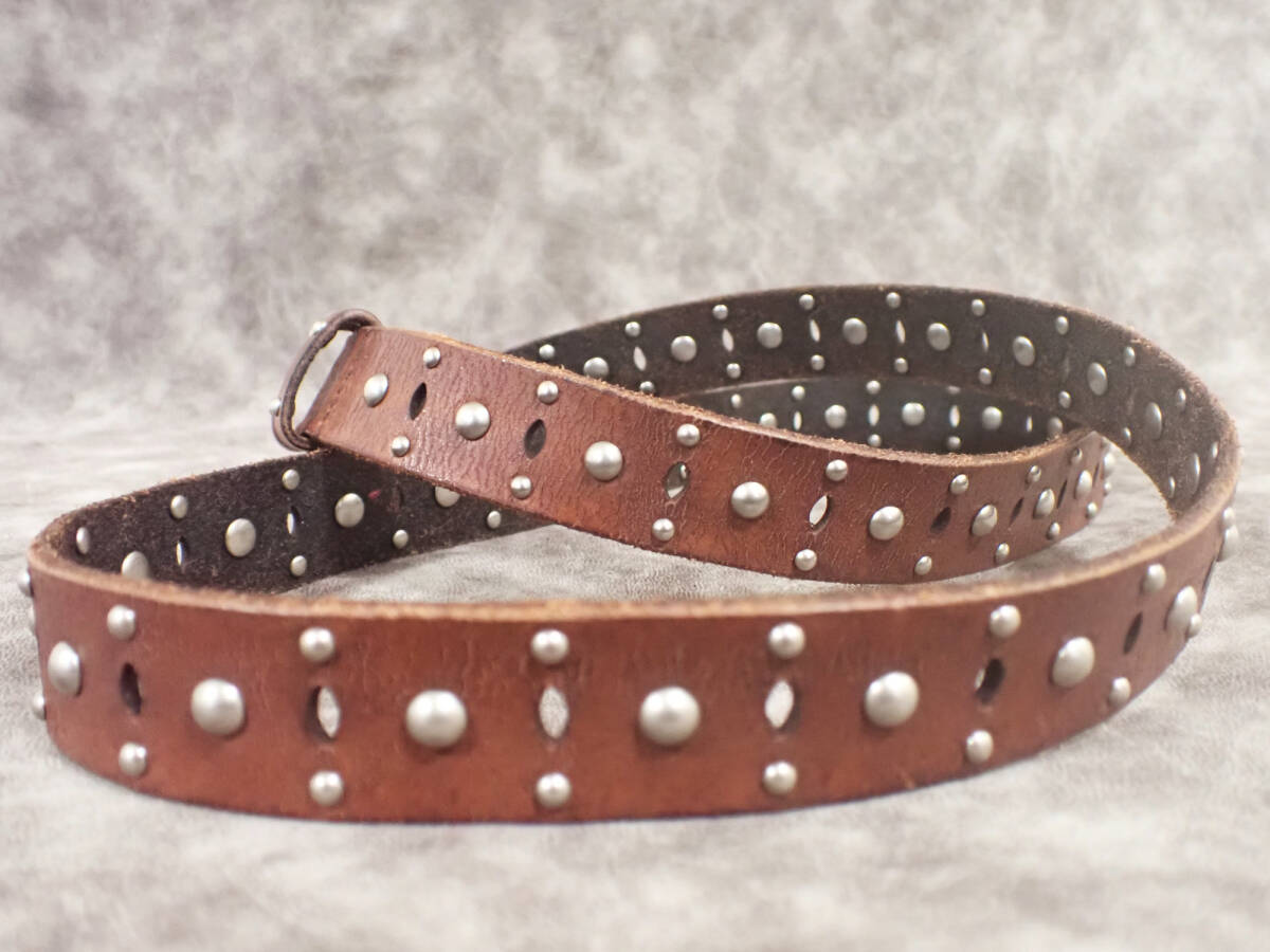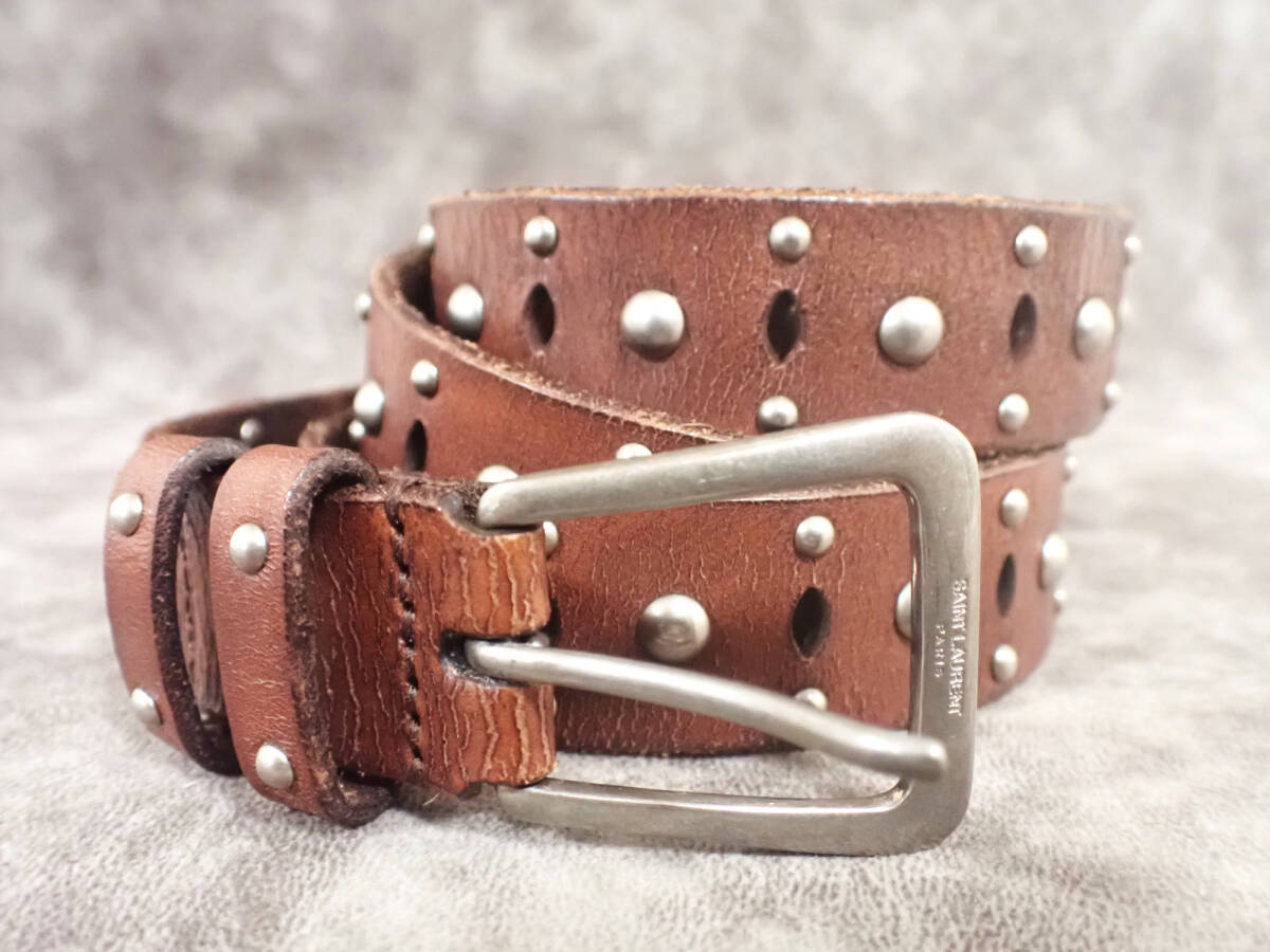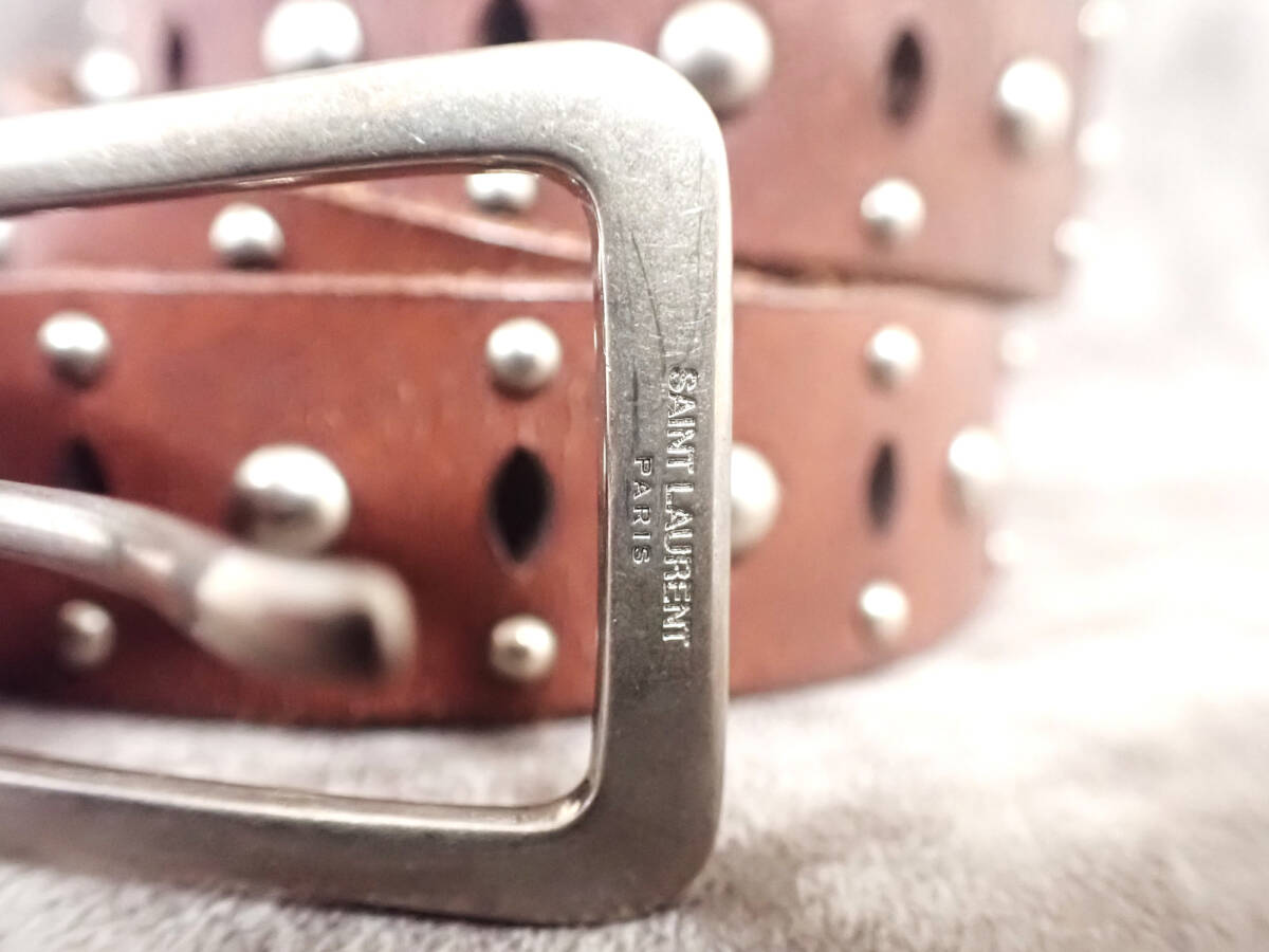 | コメント | 本商品はサンローランのスタッズレザーベルトでございます。全体にスタッズが入った、個性あるベルトです。全長は115㎝で、約2.5㎝間隔でベルトの穴がありますので、ウエスト制限なくご利用いただけます。ベルト全長:115㎝ ベルト幅:約2.5㎝ ベルト穴:約2.5㎝間隔で穴あり 経年によるレザーのシワ等がございますが、目立つ汚れやシミはございません。美品までは言い切れませんが、まだまだお使いできるお品物でございます。本商品には付属品がございませんが、緩衝材を巻いて丁寧に梱包し発送させていただきます。注文確定後は1~2日以内に発送いたします。(土日・祝日は発送業務をおこなっておりません)ぜひ、購入のご検討をお願いいたします。 | |