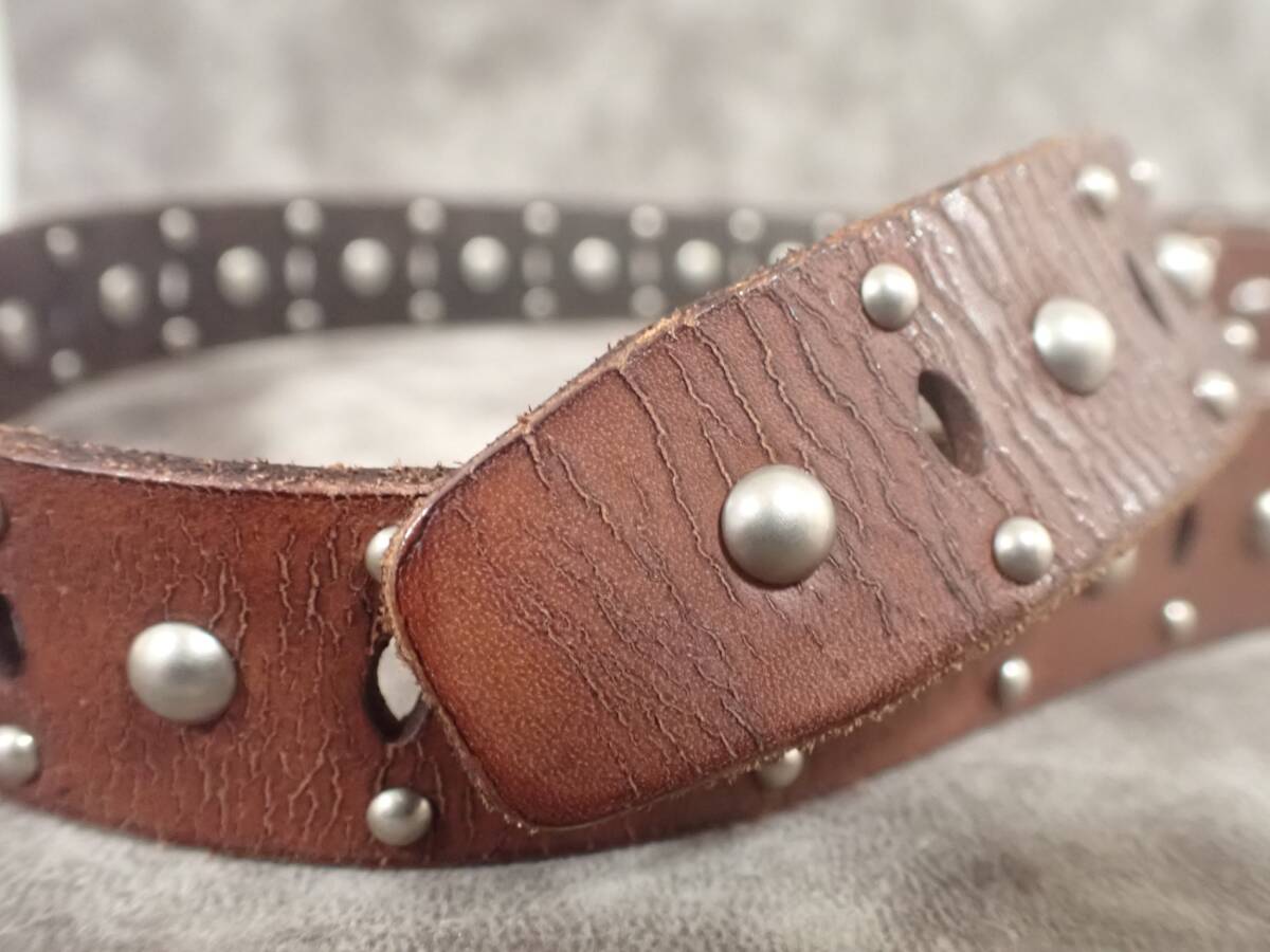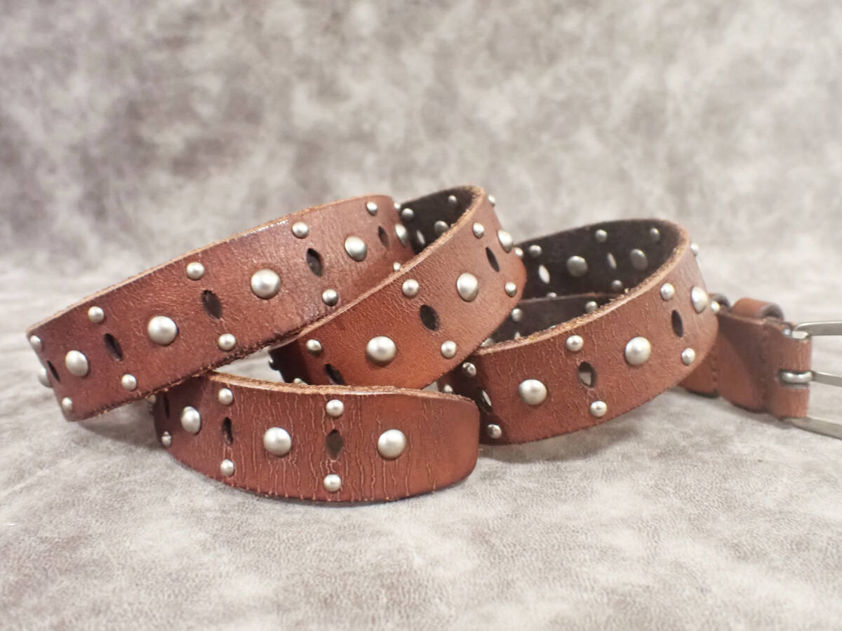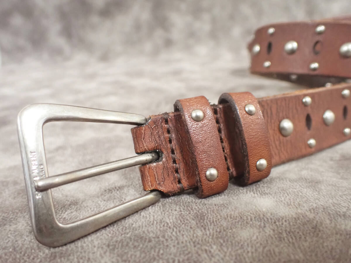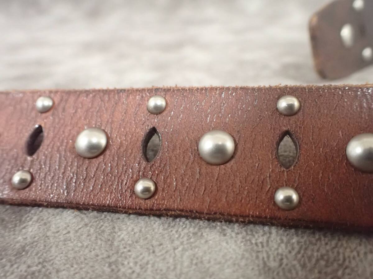 | コメント | 本商品はサンローランのスタッズレザーベルトでございます。全体にスタッズが入った、個性あるベルトです。全長は115㎝で、約2.5㎝間隔でベルトの穴がありますので、ウエスト制限なくご利用いただけます。ベルト全長:115㎝ ベルト幅:約2.5㎝ ベルト穴:約2.5㎝間隔で穴あり 経年によるレザーのシワ等がございますが、目立つ汚れやシミはございません。美品までは言い切れませんが、まだまだお使いできるお品物でございます。本商品には付属品がございませんが、緩衝材を巻いて丁寧に梱包し発送させていただきます。注文確定後は1~2日以内に発送いたします。(土日・祝日は発送業務をおこなっておりません)ぜひ、購入のご検討をお願いいたします。 | |