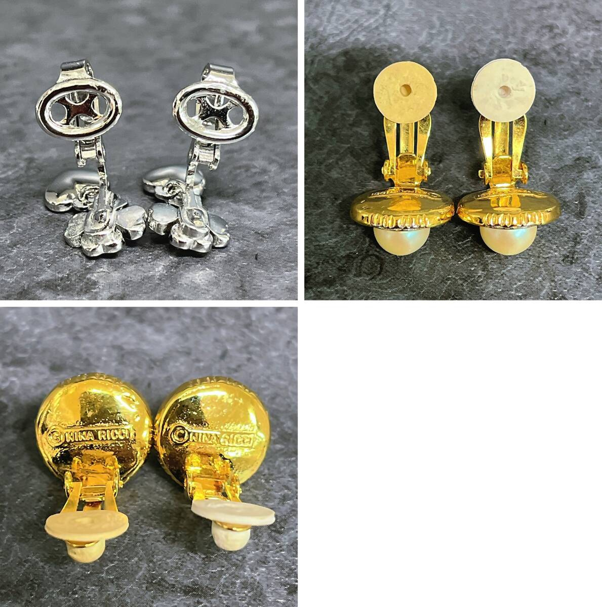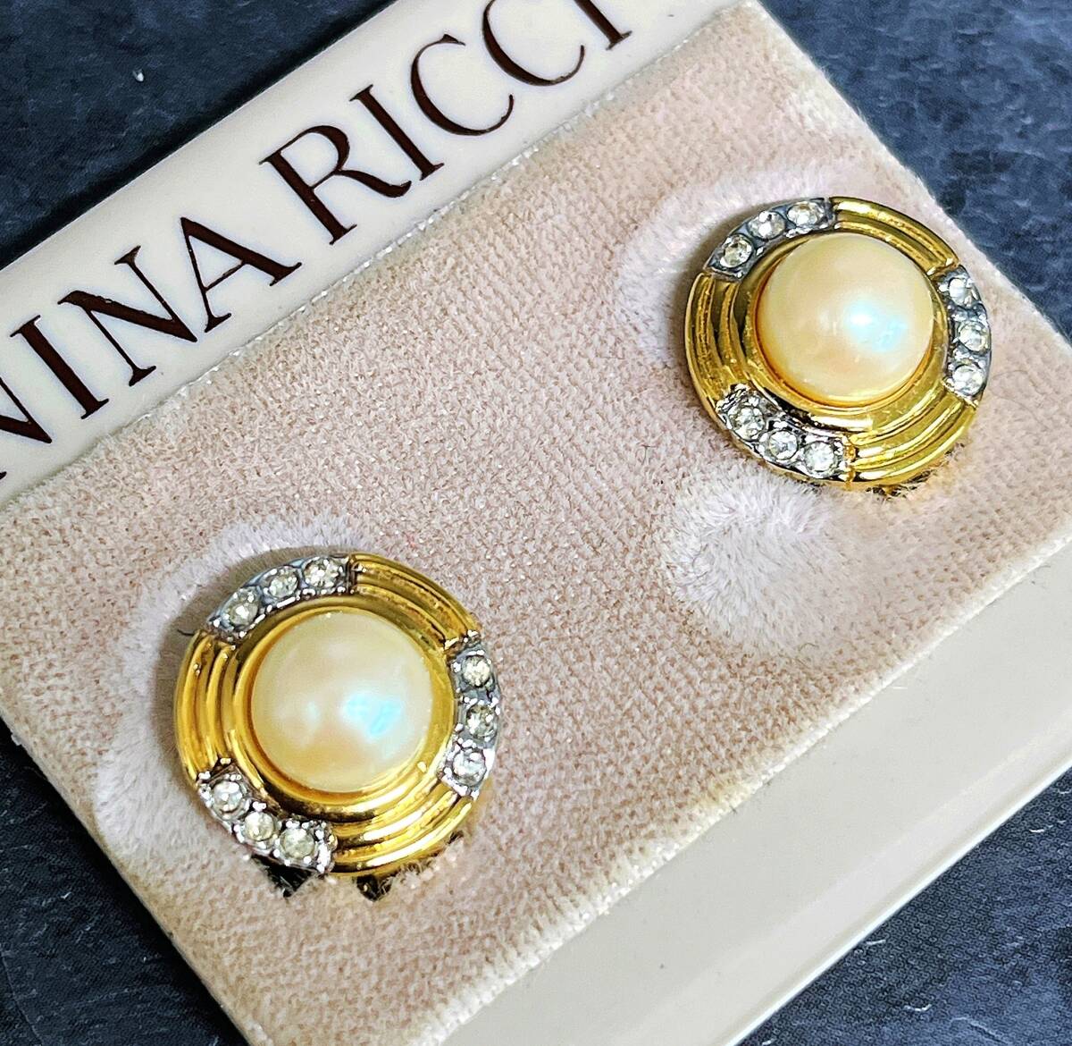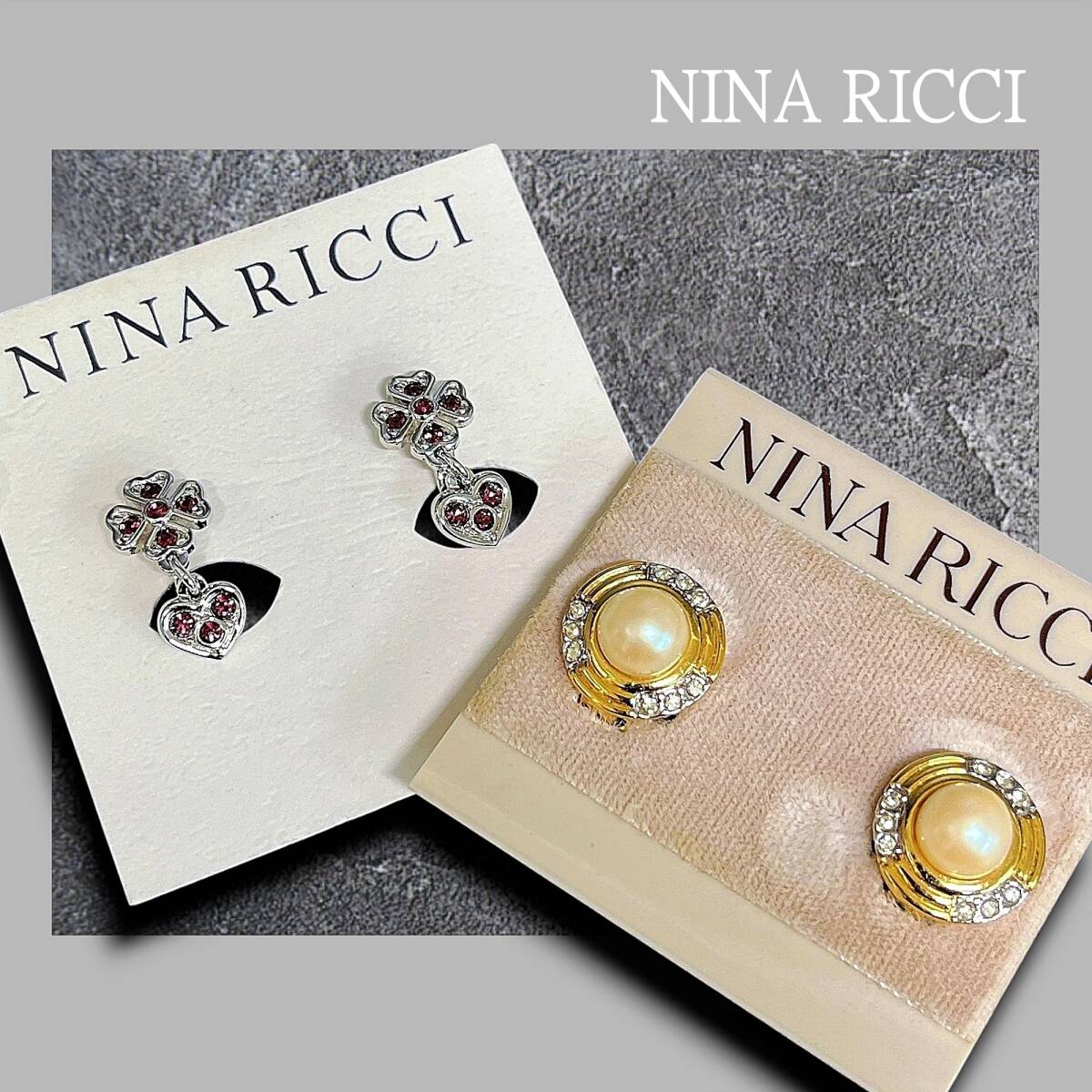 ■未使用 NINA RICCI ニナリッチ イヤリング 2点セット(ラインストーン・フェイクパール)