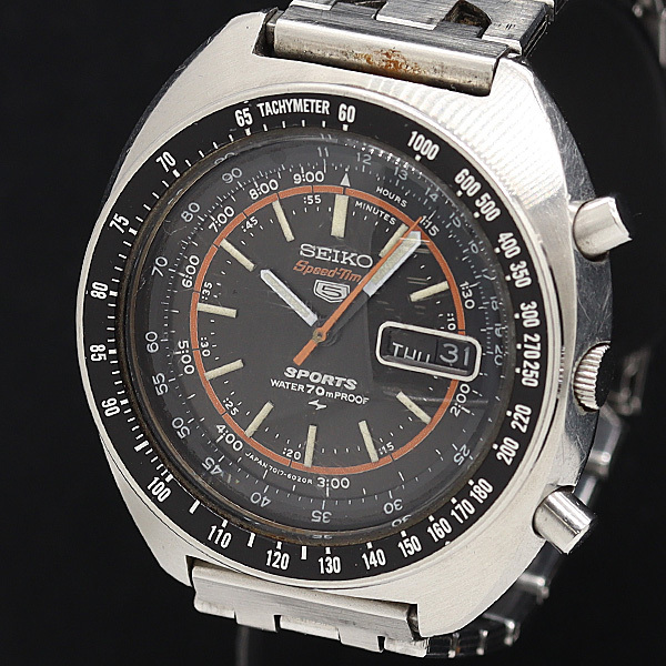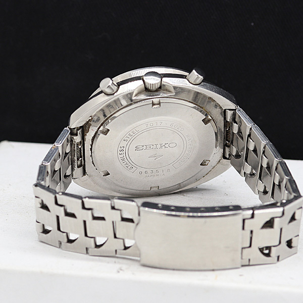 1円 セイコー 7017-6020 スピードタイマー AT/自動巻 ブラック文字盤 メンズ腕時計 0081400 11ERT IGR