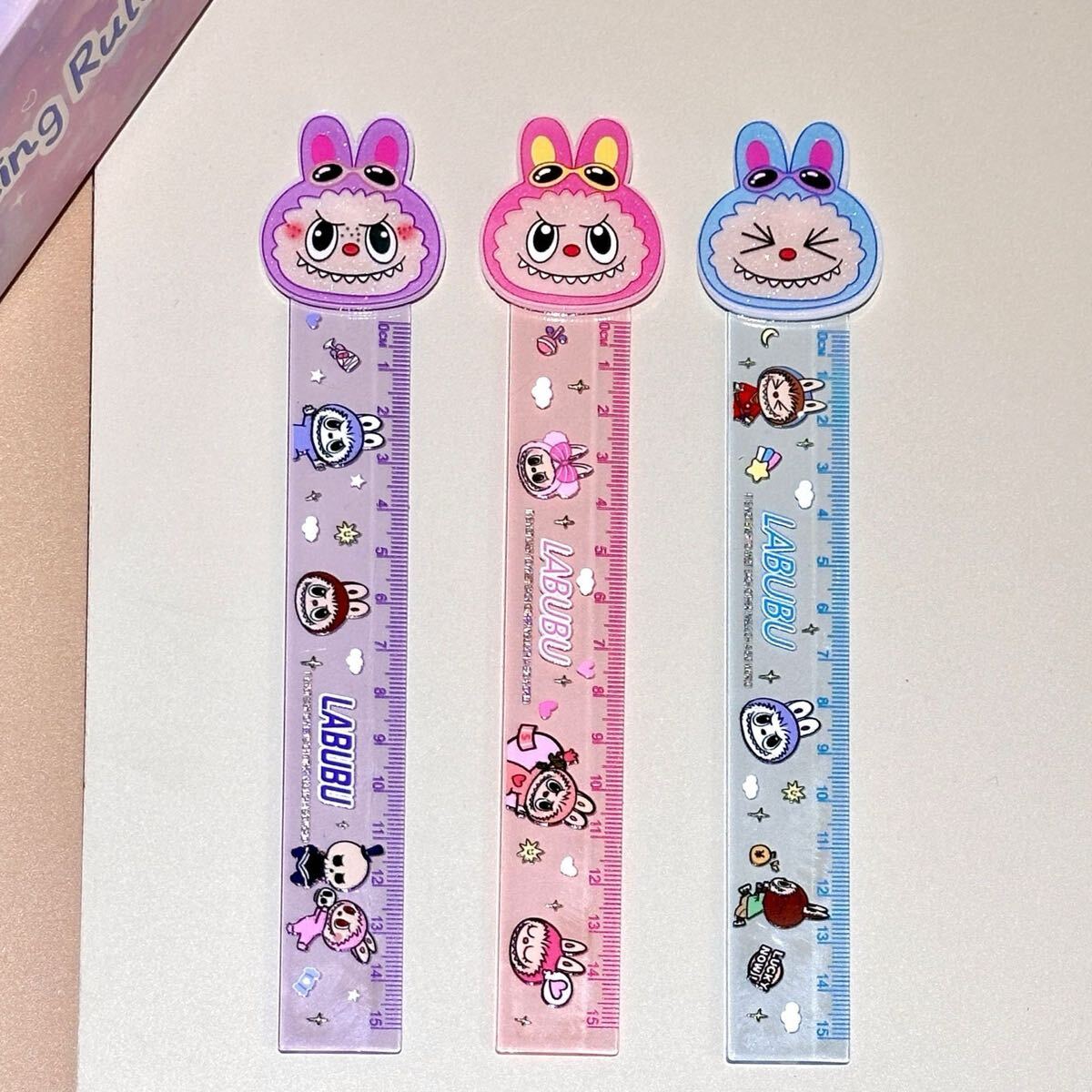 LABUBUのかわいいキャラクターがデザインされたルーラー3色セットです。
