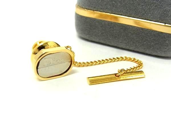 ■美品■ ChristianDior ディオール ロゴ タイピン タイチェーン ビジネス 紳士 メンズ ゴールド系×シルバー系 DK6350