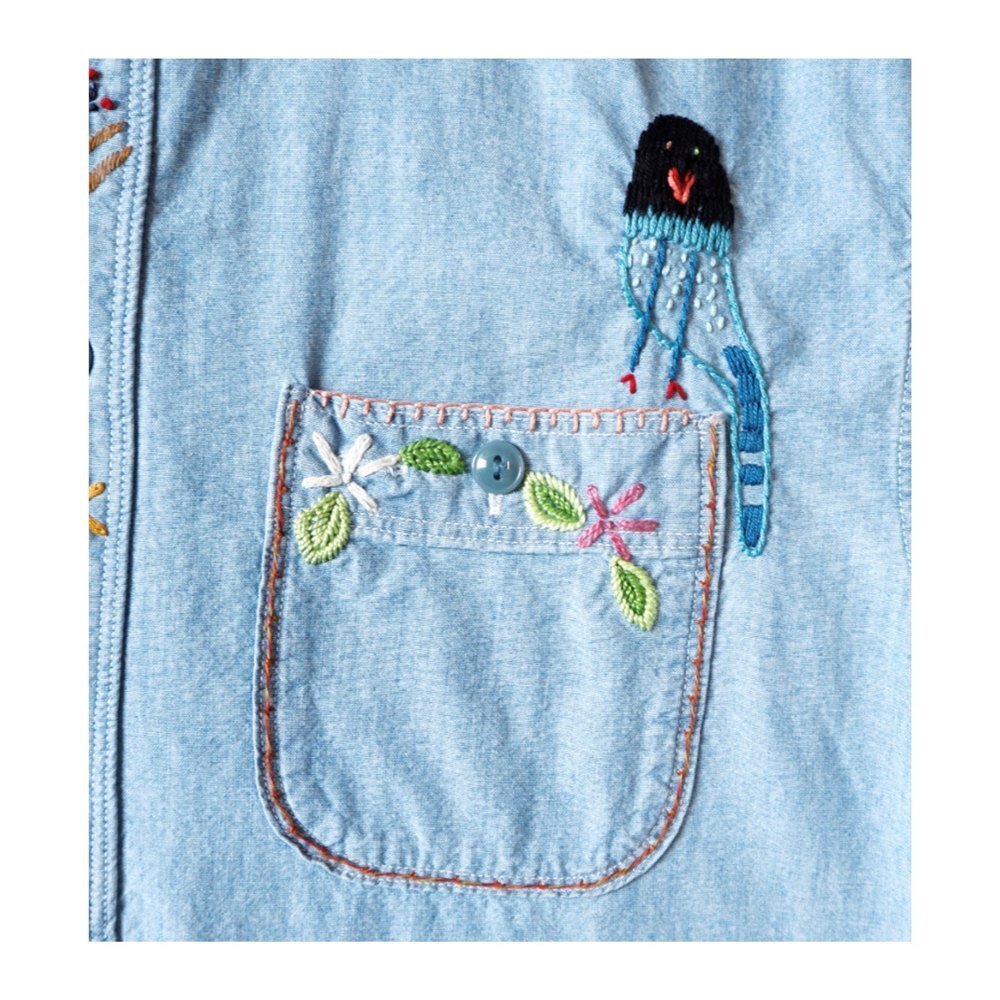 | 【商品名】 | 【KAPITAL キャピタル】花 刺繍入り コットン シャンブレーシャツ 長袖シャツ ユニセックス トップス 青 3サイズ |
