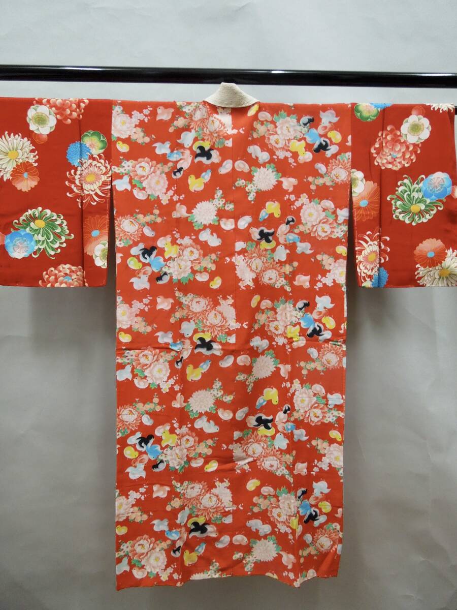 目立った汚れも無く布地もしっかりしています。サイズ約着丈118センチ裄58センチ袖丈48センチ袖巾28センチです。時代の汚れ、色褪せ、色焼けなどあり又画像の色彩と実物は多少の違いがあります。発送の時には可能な限り小さなサイズにて発送する為にシワなどは、ご容赦いただけます様にお願いします。