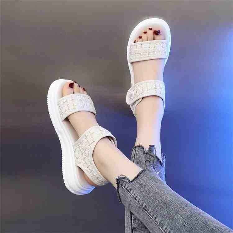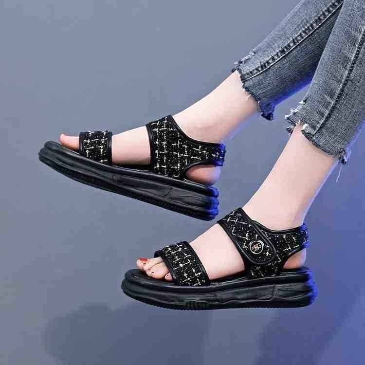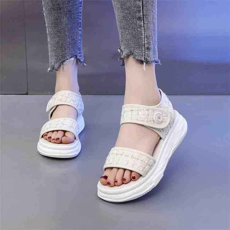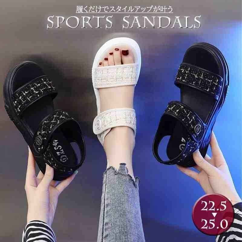 ・ツイード調がフェミニンな厚底スポーツサンダル。