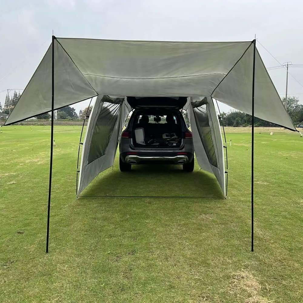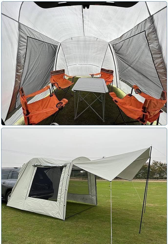 カーサイドタープ 車用タープテント テント トランクテント 車と連結 4-6人用 簡単設置 キャンプ 通気性 防水 防災 日よけ 車中泊
