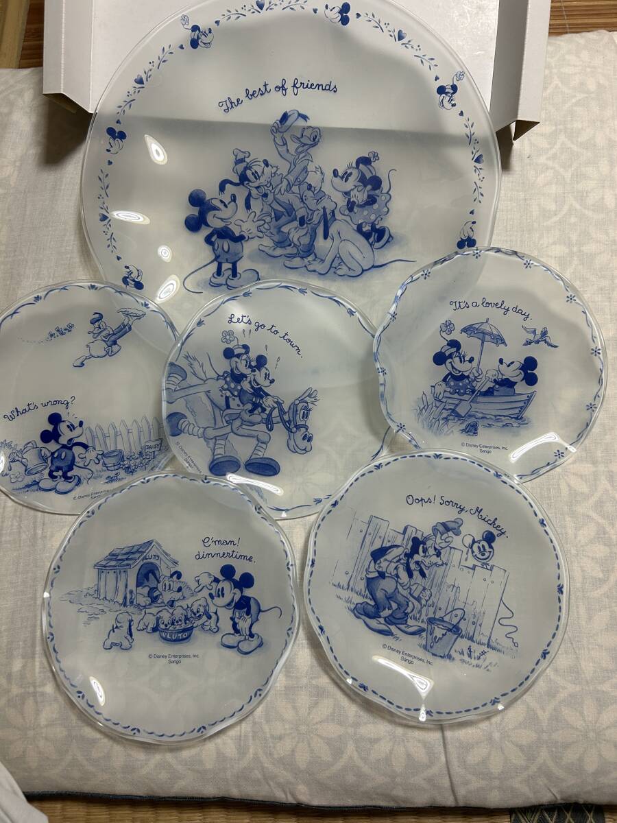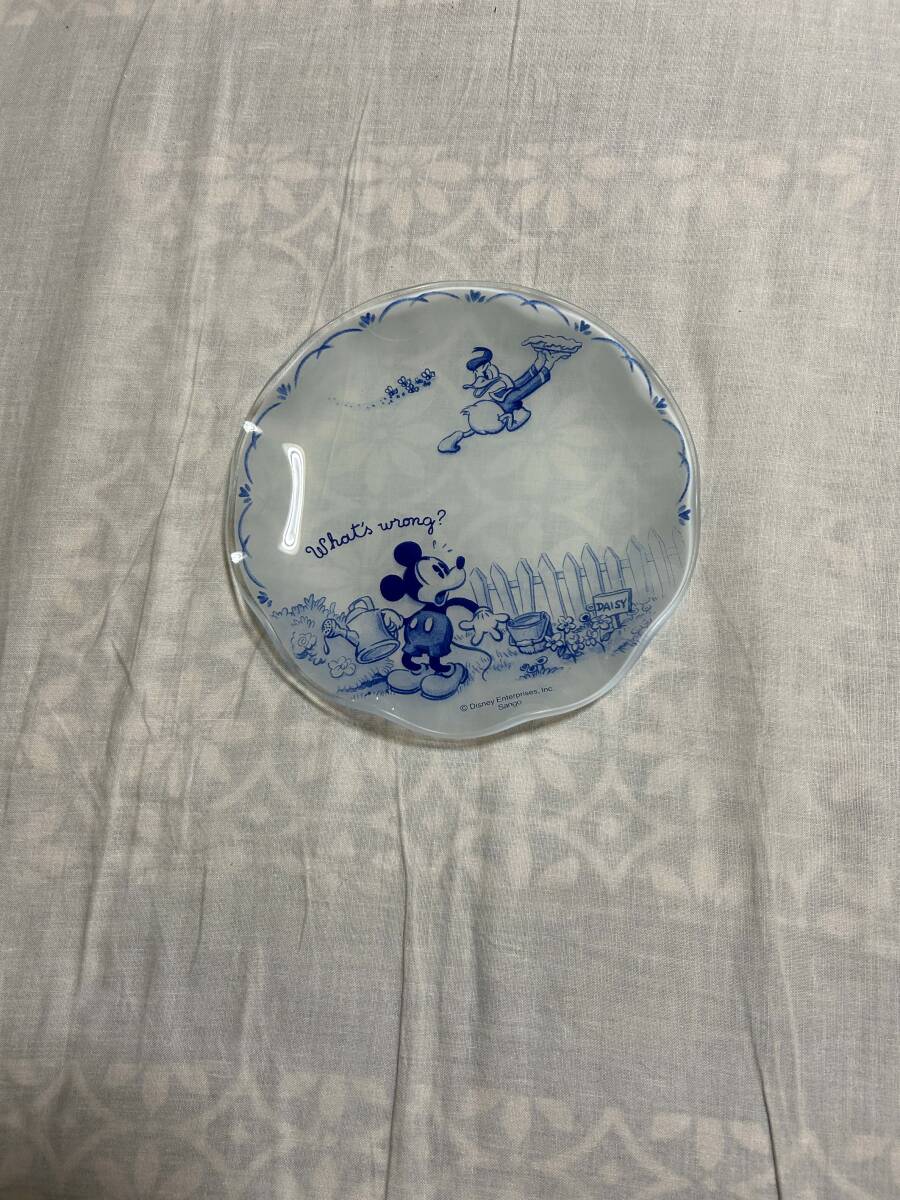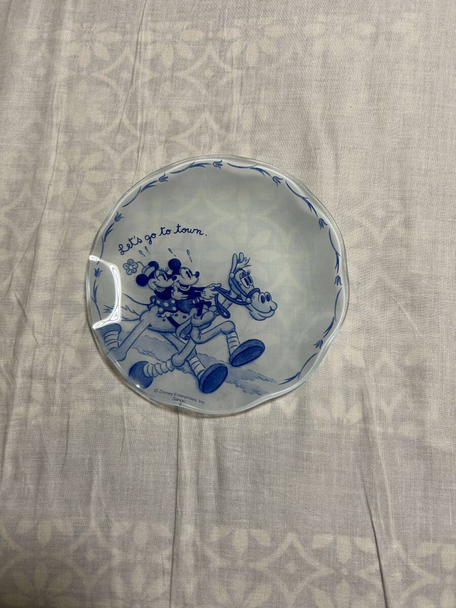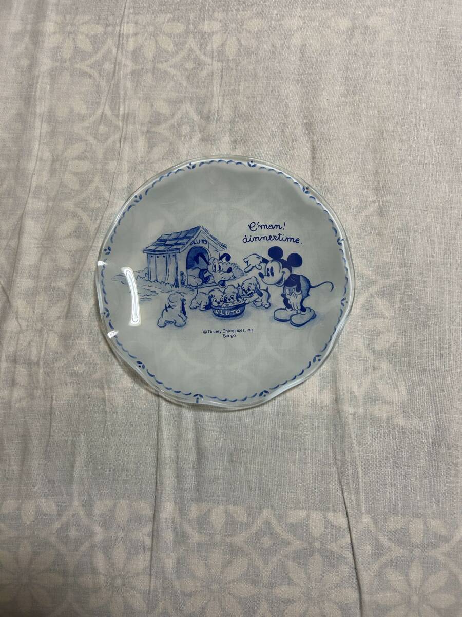ガラスにディズニー柄のお皿のセットです。波打ったデザインになっています。