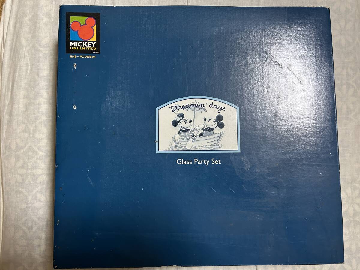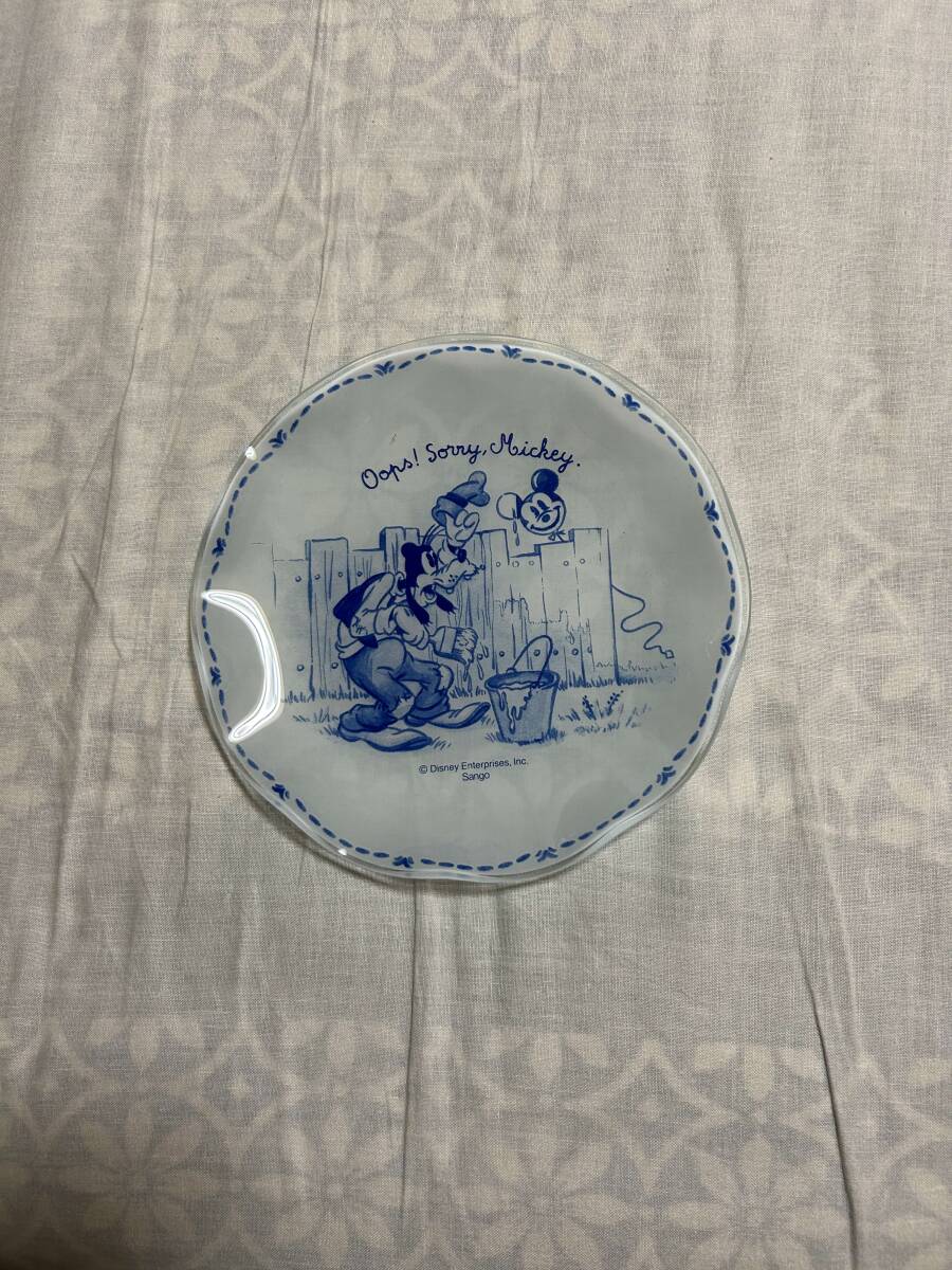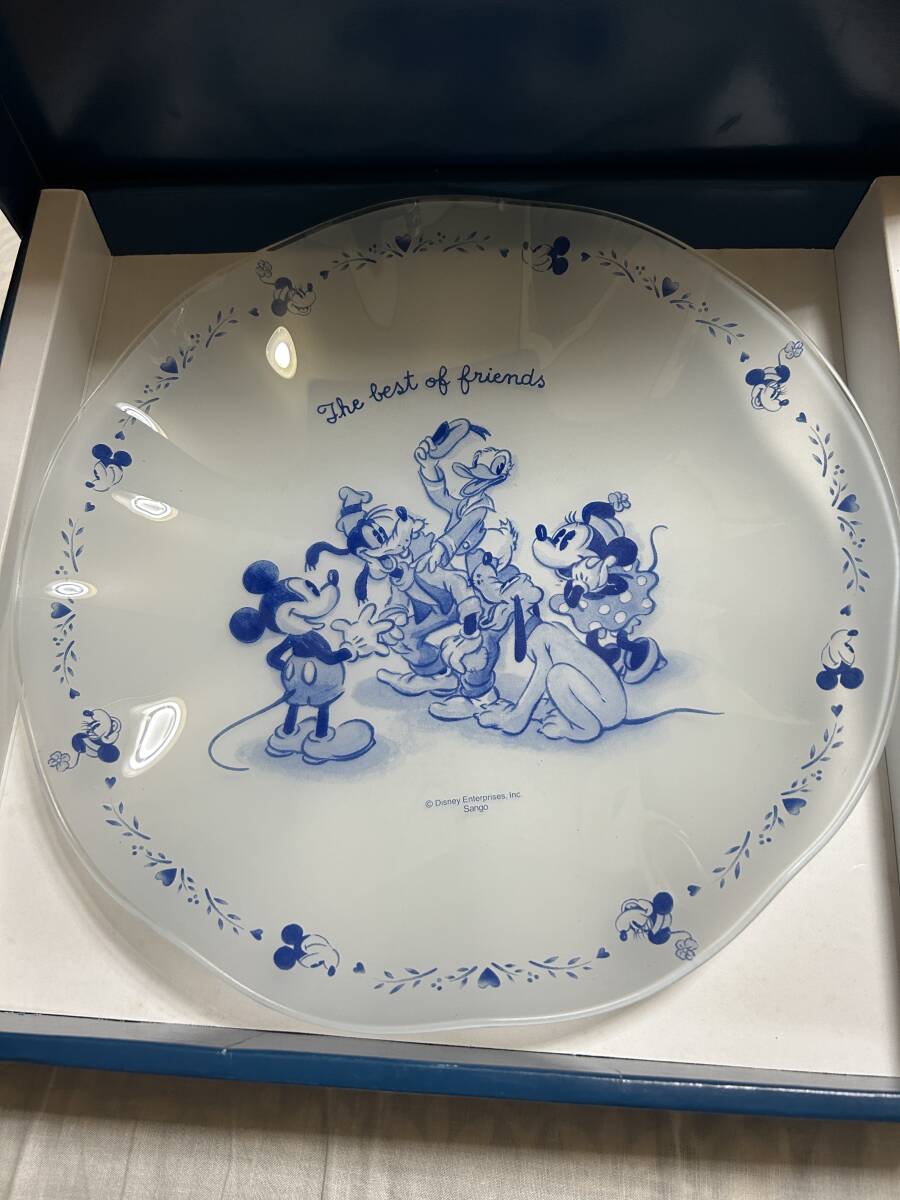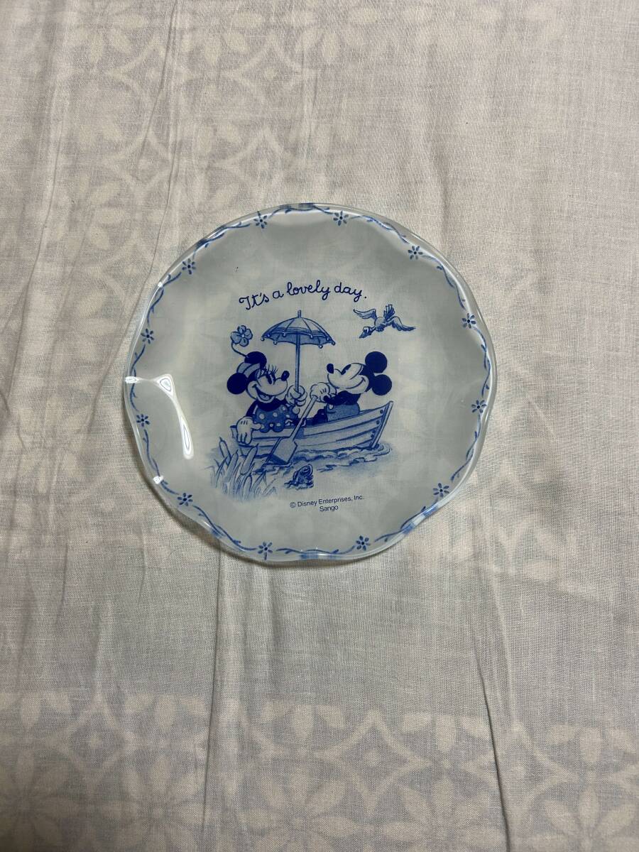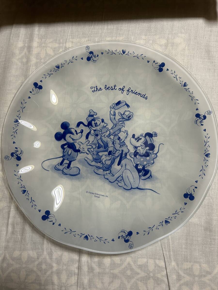 ガラスにディズニー柄のお皿のセットです。波打ったデザインになっています。